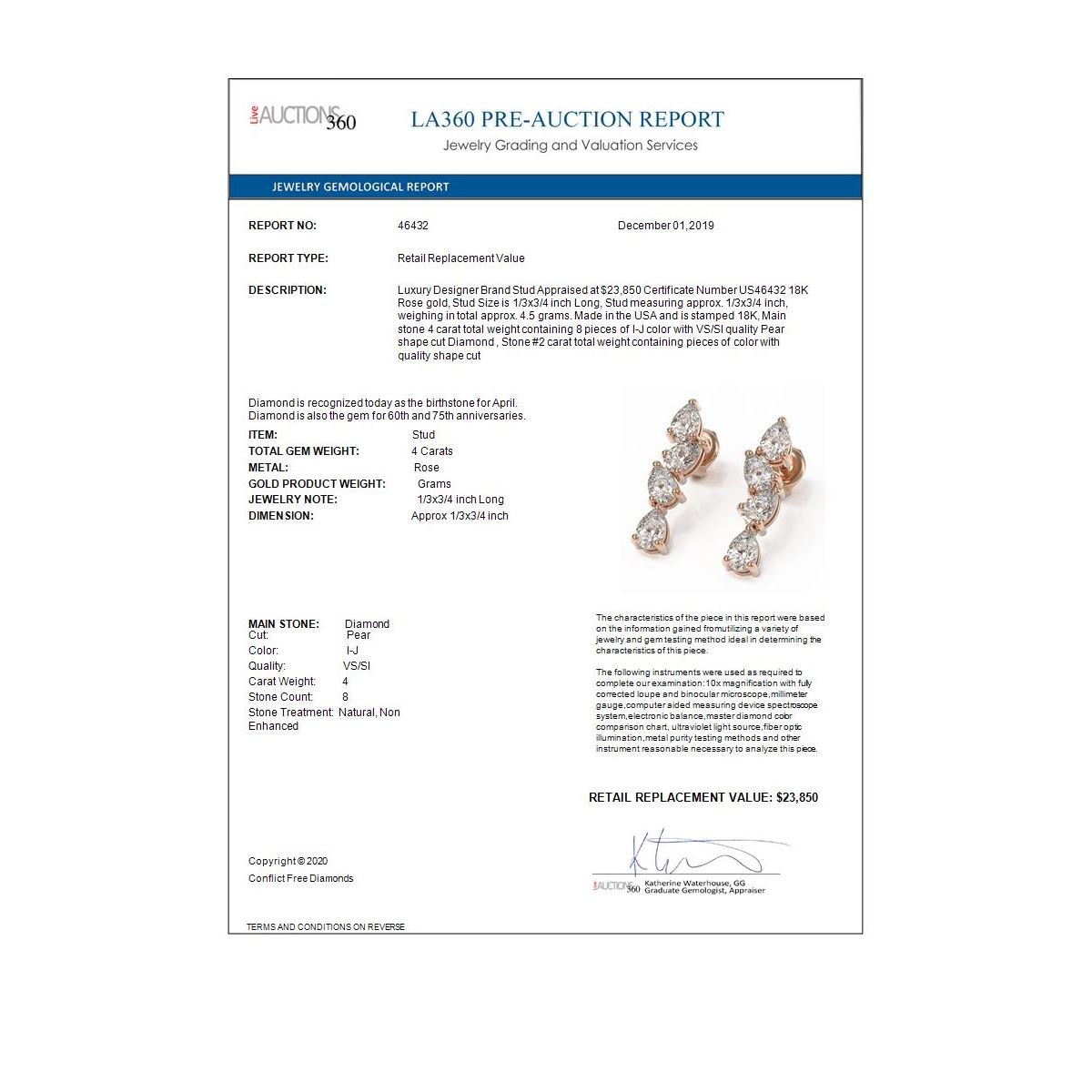 REF-596F2M - SKU: 46432 ---- 4 ctw Pear Diamond Designer Earrings 18K Rose Gold