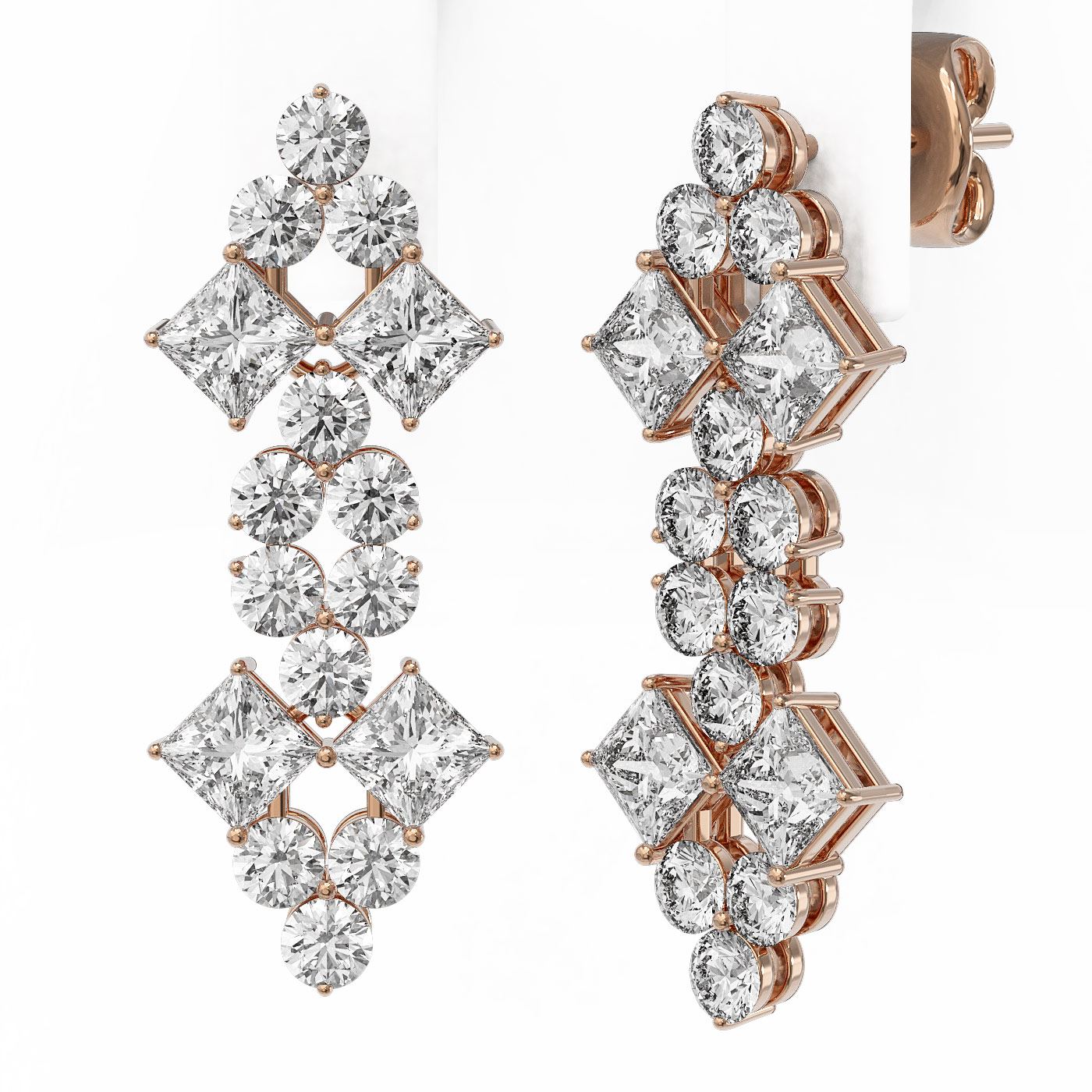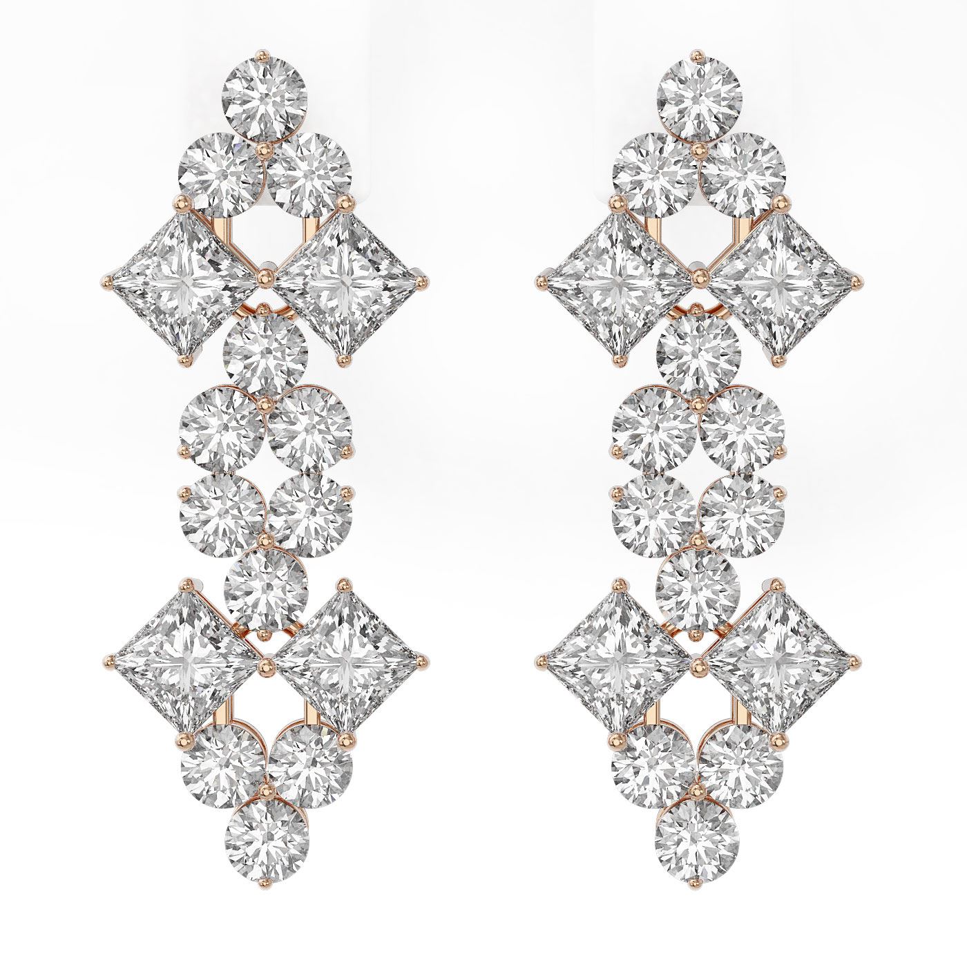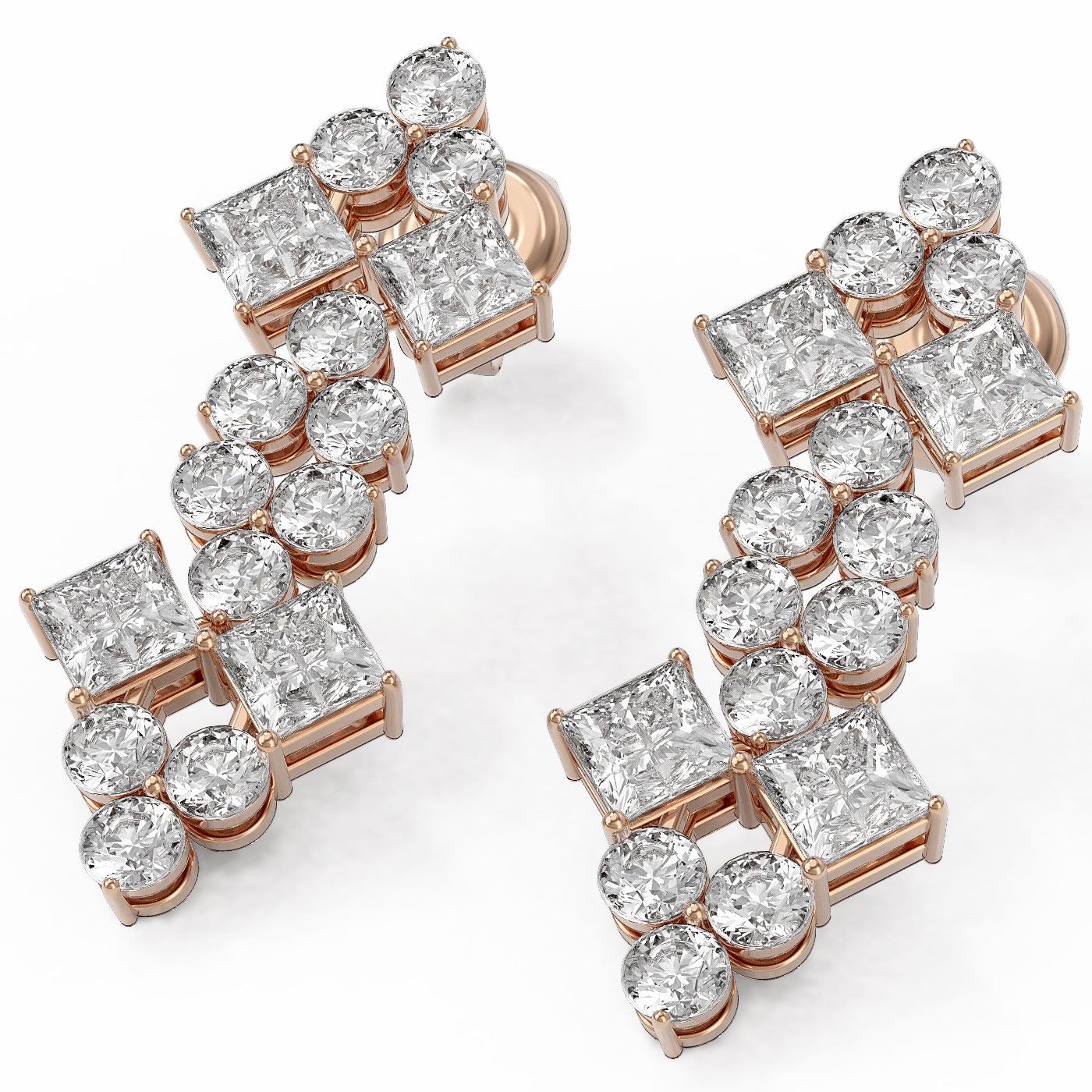 SKU: 47782 ---- 4 ctw Princess Cut Diamond Designer Earrings 18K Rose Gold