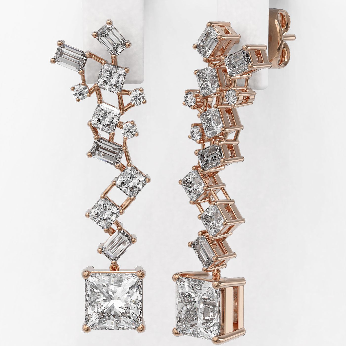 SKU: 48889 ---- 4 ctw Princess Cut Diamond Designer Earrings 18K Rose Gold