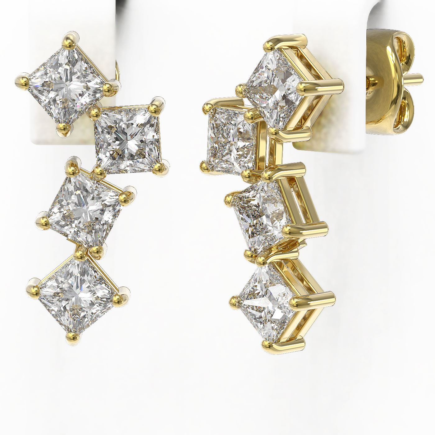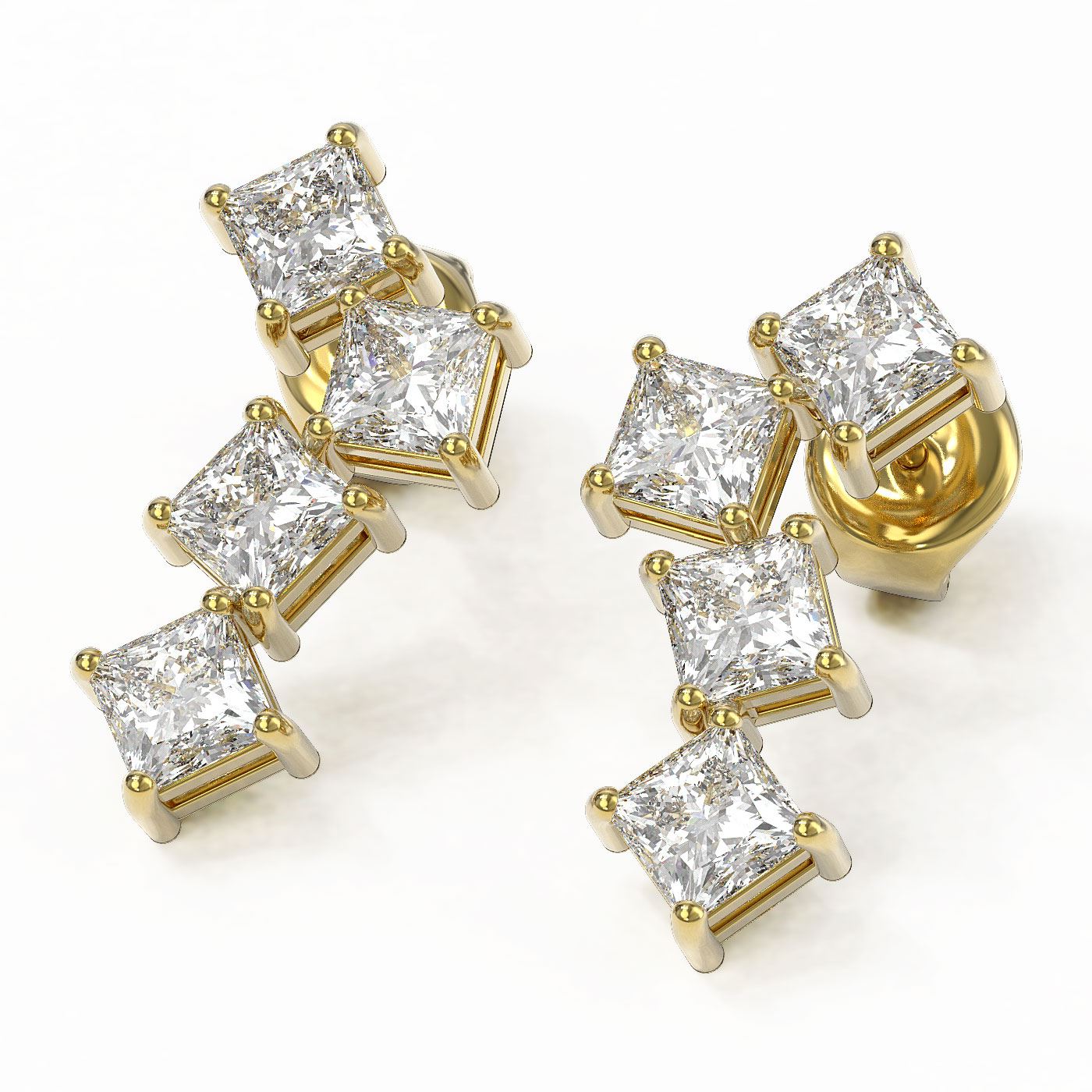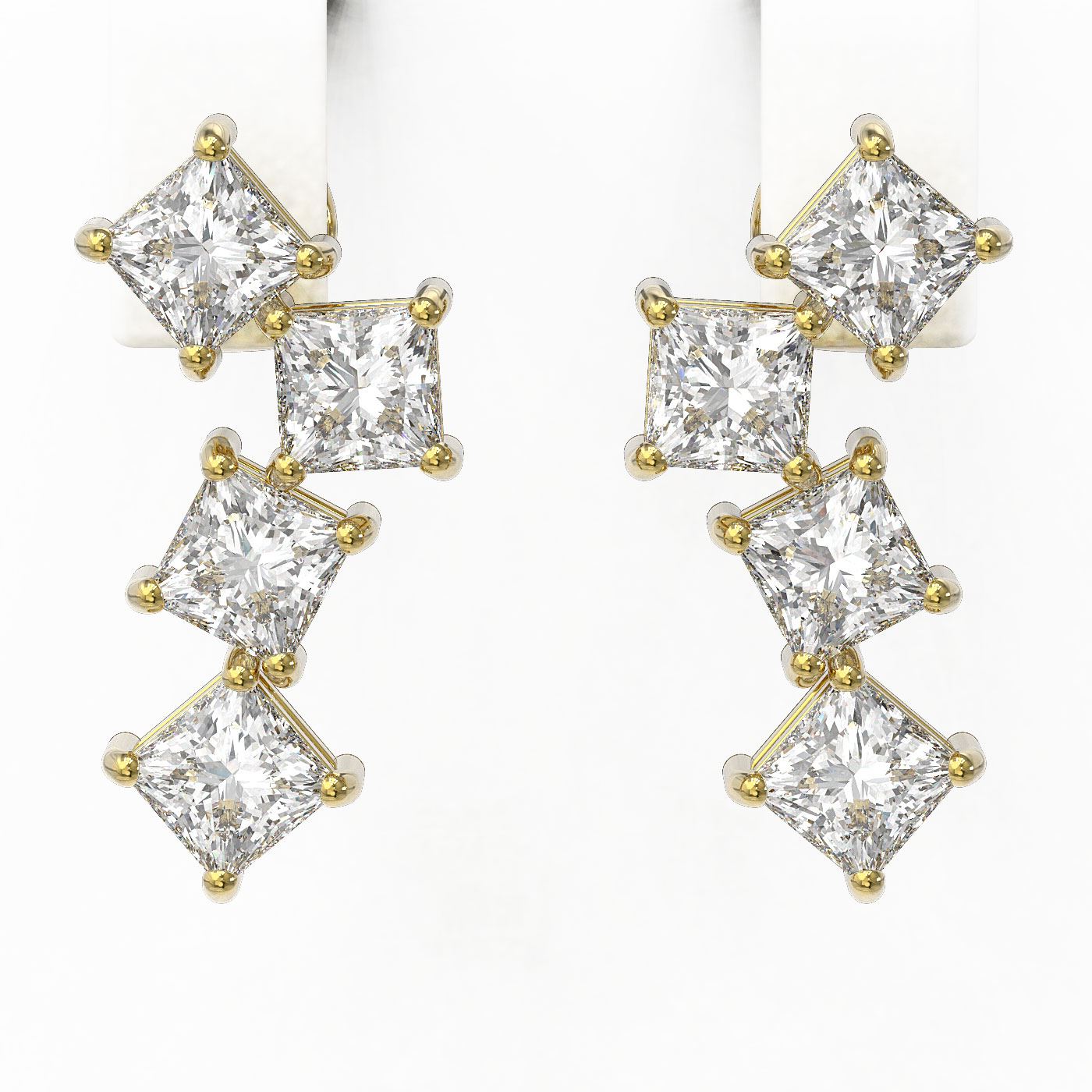REF-592W8H - SKU: 46415 ---- 4 ctw Princess Diamond Earrings 18K Yellow Gold