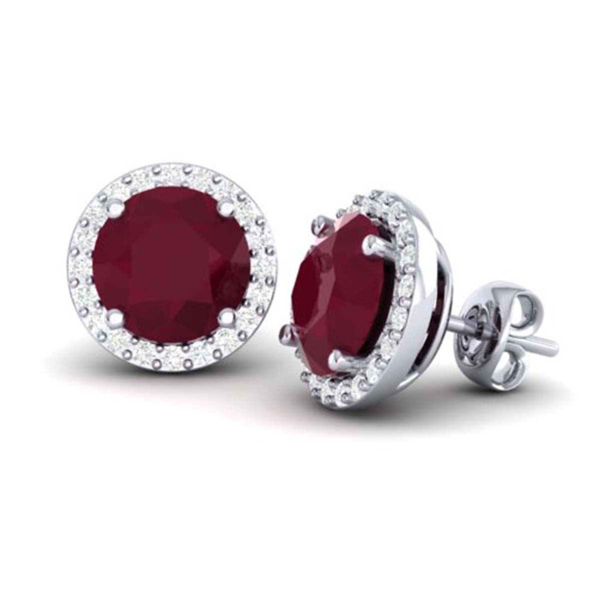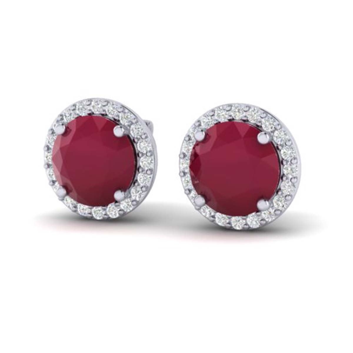 REF-80W2H - SKU:21501 ---- 4 ctw Ruby & Halo VS/SI Diamond Earrings 18K White Gold