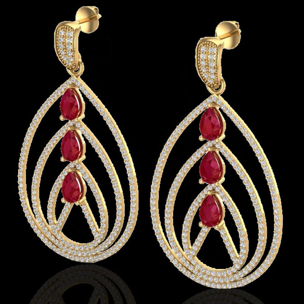 SKU: 22458 ---- 4 ctw Ruby & Micro Pave VS/SI Diamond Designer Earrings 18k Yellow Gold