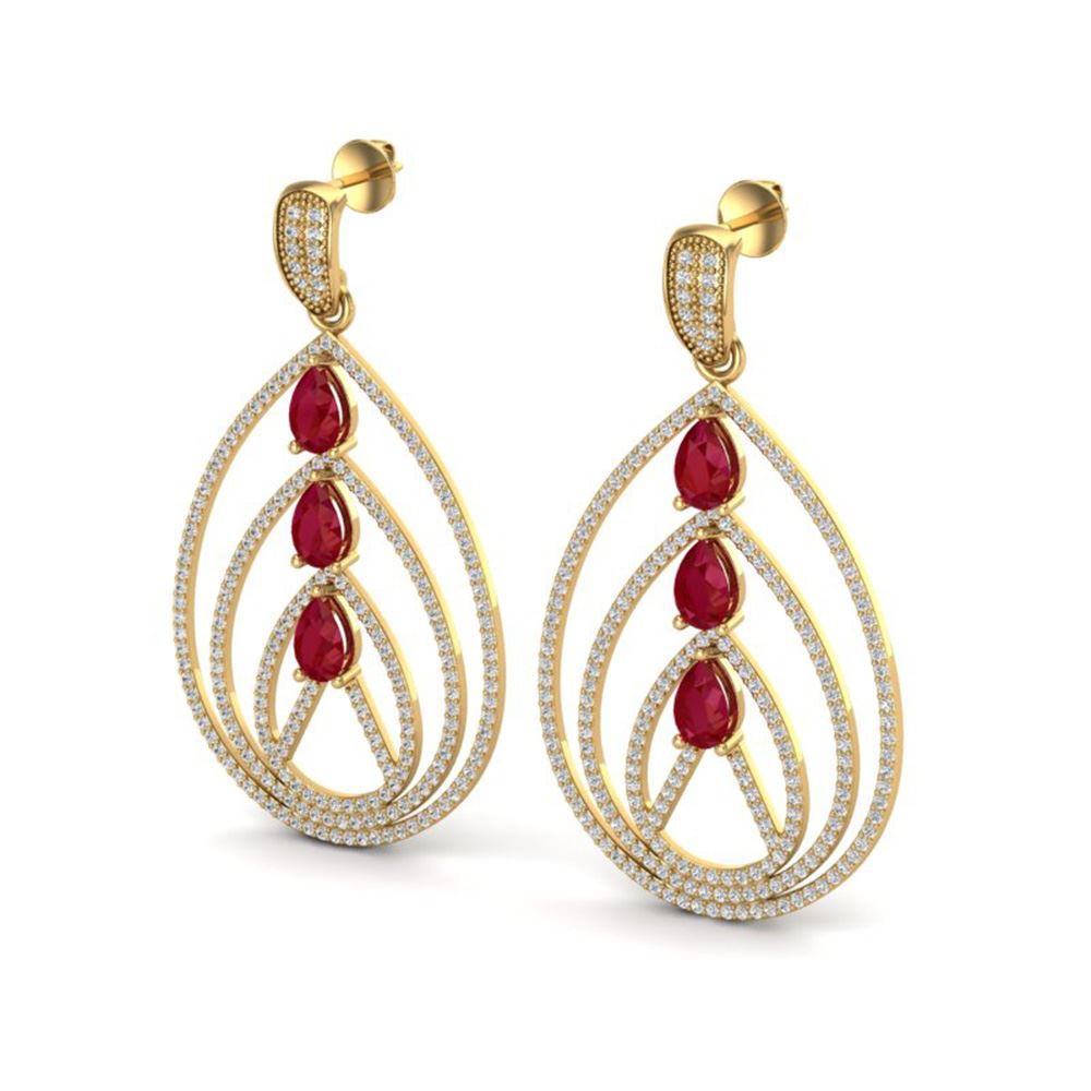 SKU: 22458 ---- 4 ctw Ruby & Micro Pave VS/SI Diamond Designer Earrings 18k Yellow Gold