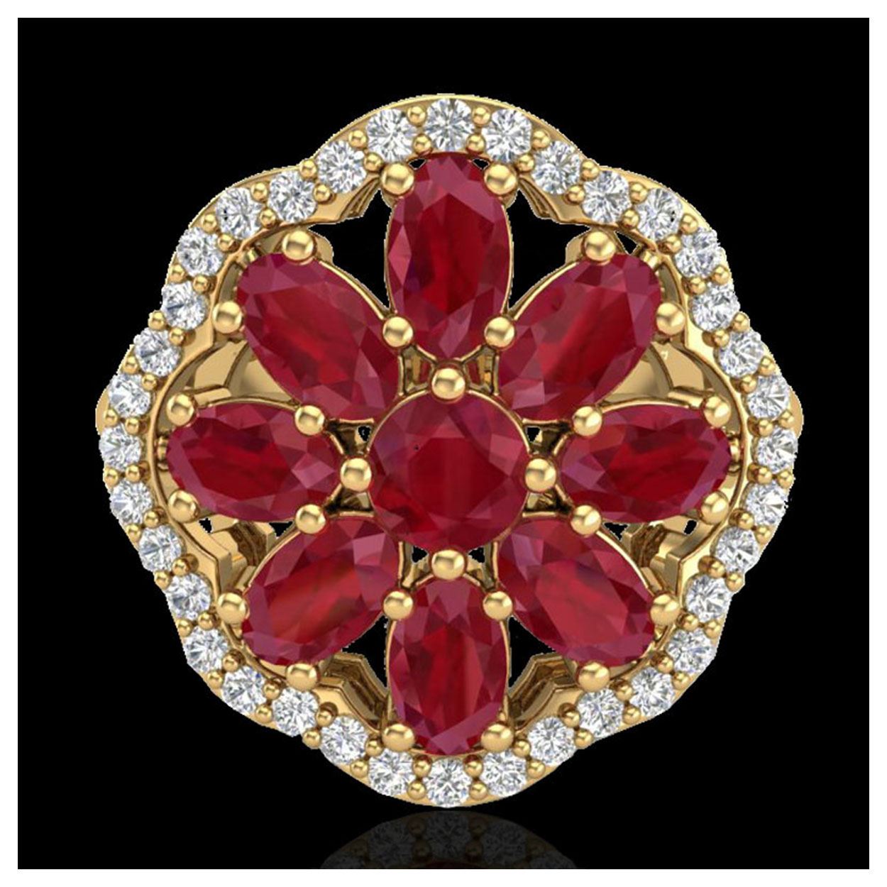 4 ctw Ruby & VS/SI Diamond Cluster Ring 10K Yellow Gold