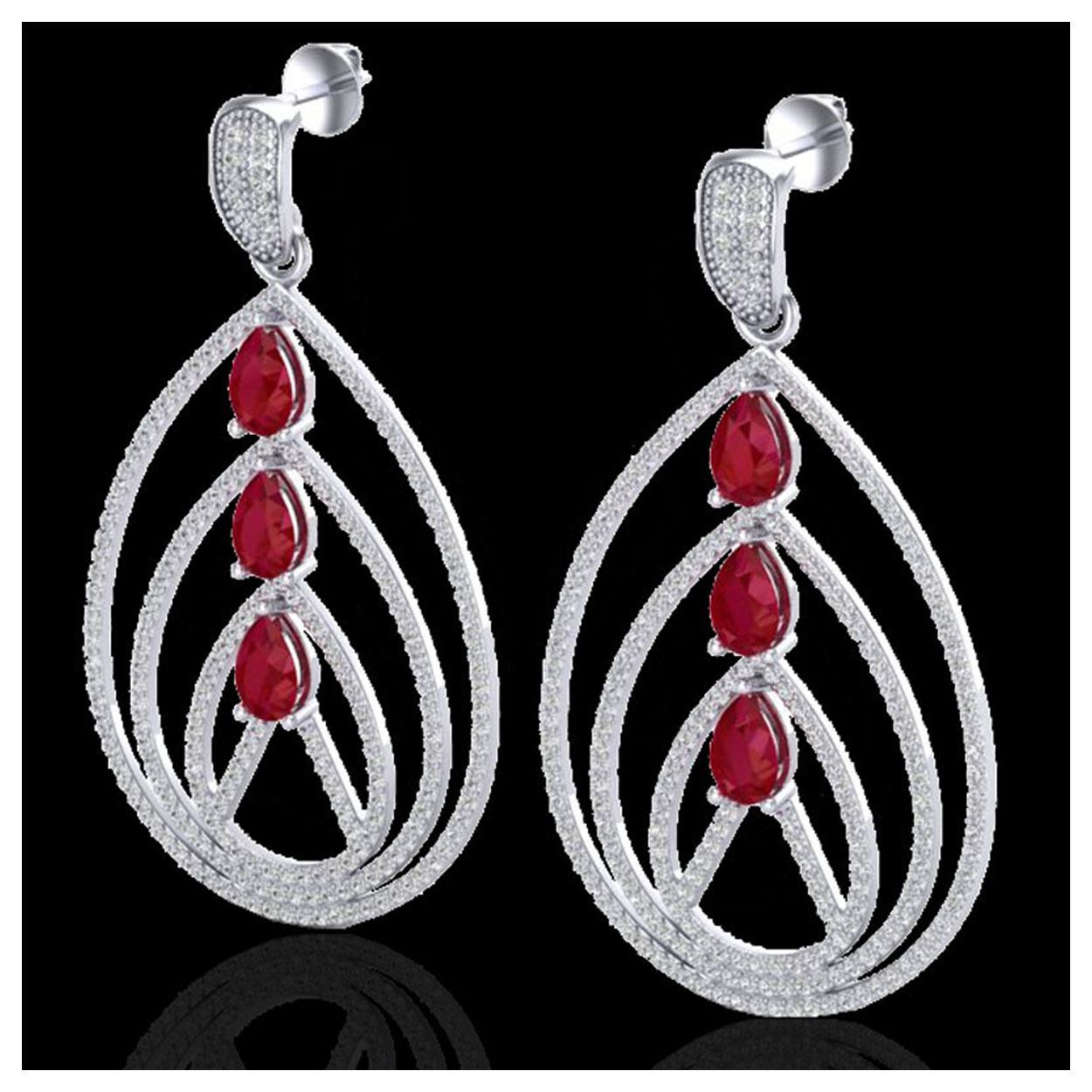 4 ctw Ruby & VS/SI Diamond Earrings 18K White Gold