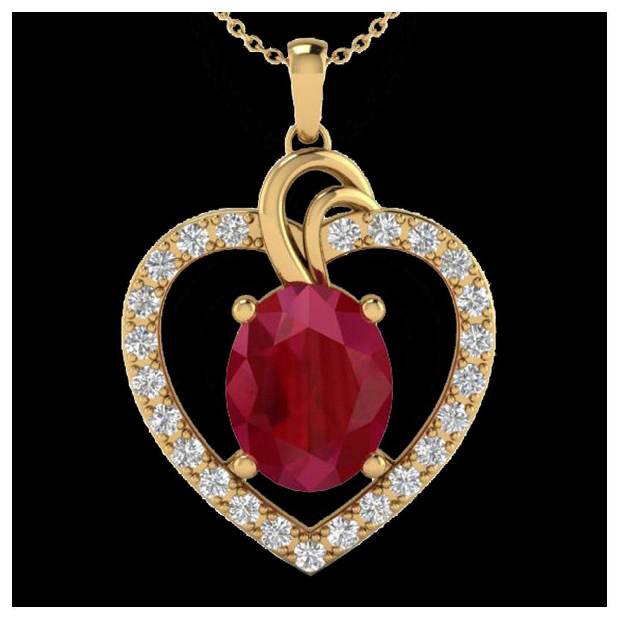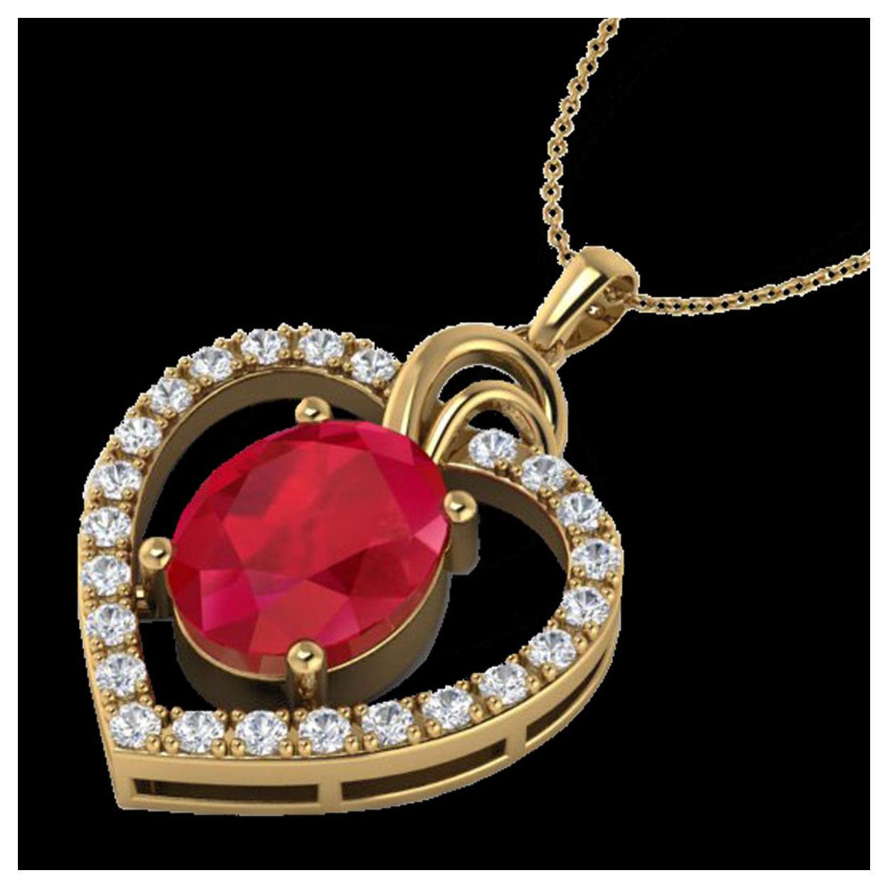 4 ctw Ruby & VS/SI Diamond Heart Necklace 14K Yellow Gold