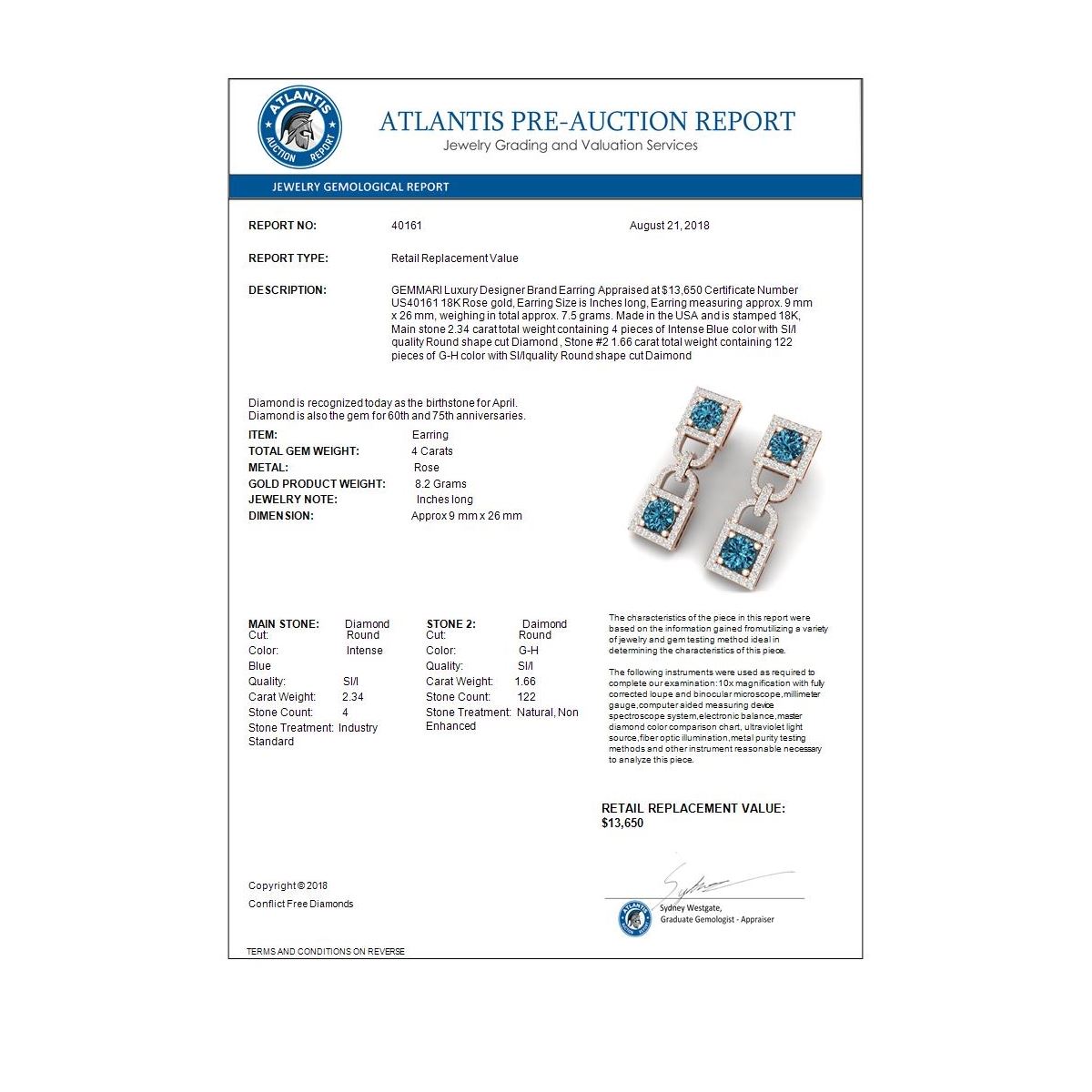 REF-292X5R - SKU:40161 ---- 4 ctw SI/I Intense Blue And Diamond Earrings 18K Rose Gold