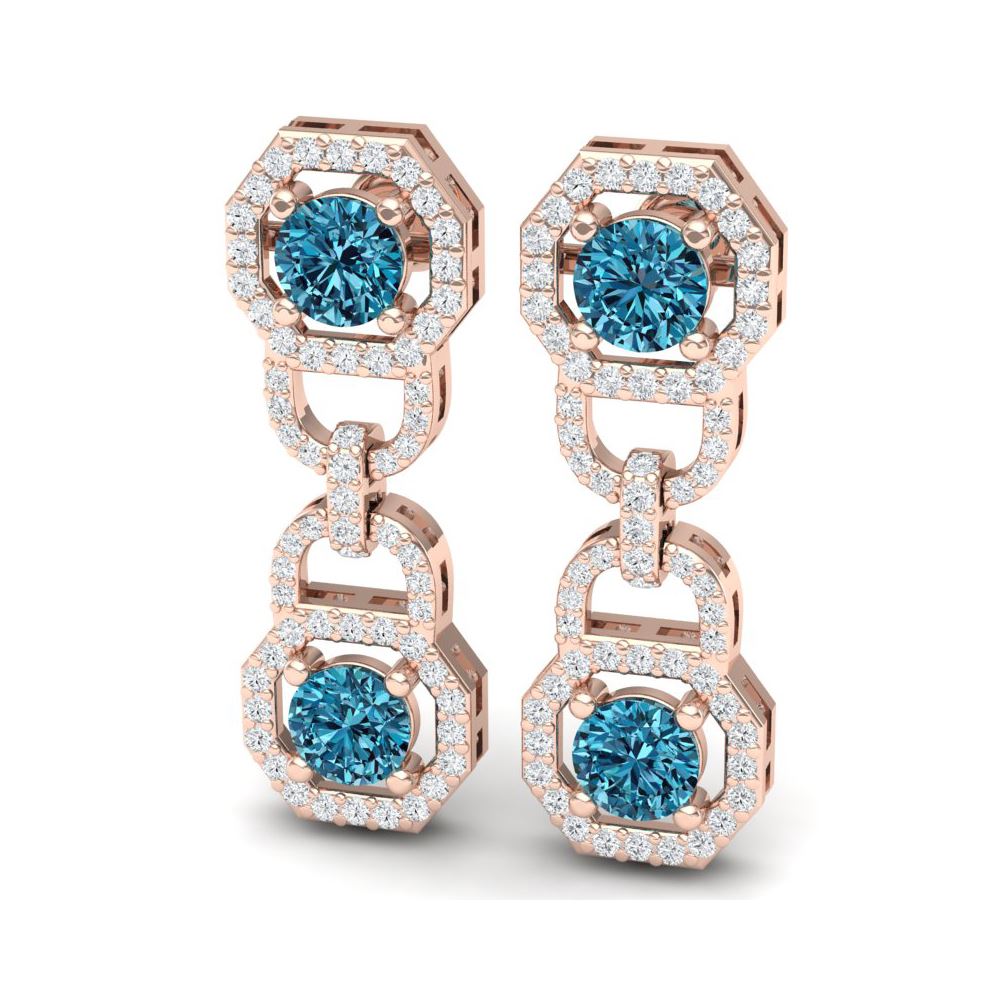 4 ctw SI/I Intense Blue Diamond Earrings 18K Rose Gold