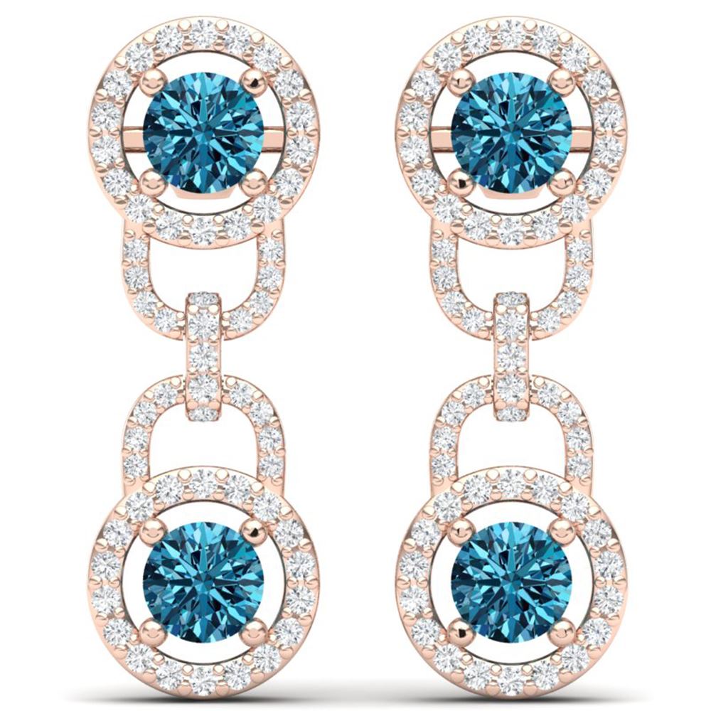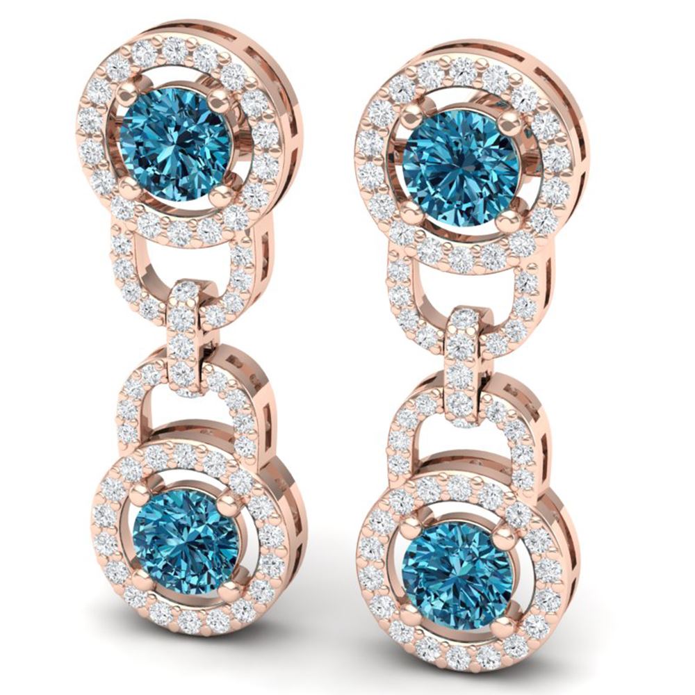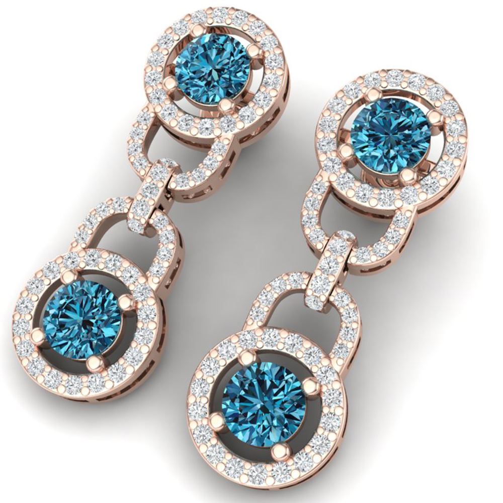 SKU: 40107 ---- 4 ctw SI/I Intense Blue Diamond Earrings 18K Rose Gold