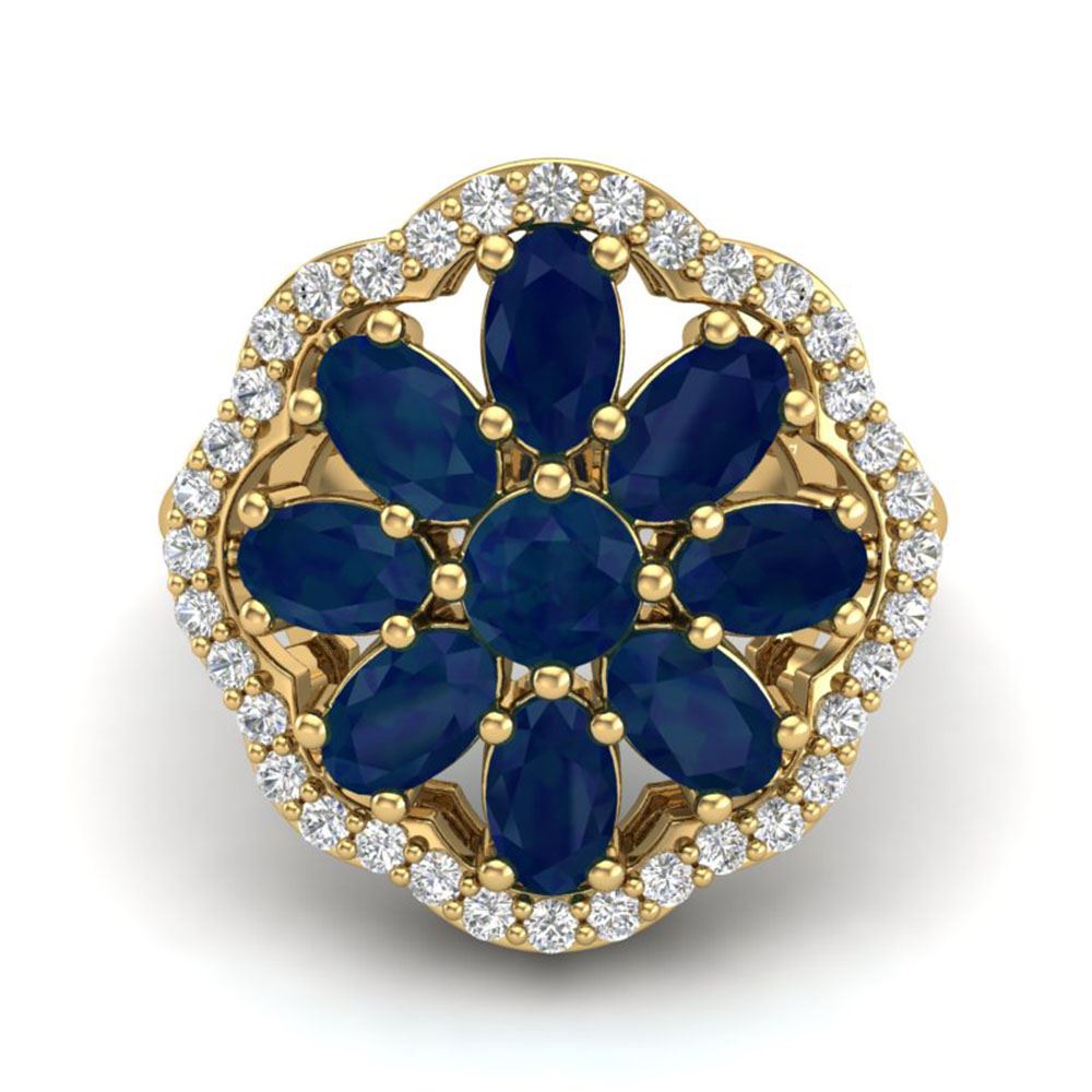 REF-49R3K - SKU: 20787 ---- 4 ctw Sapphire & VS/SI Diamond Cluster Designer Ring 10k Yellow Gold