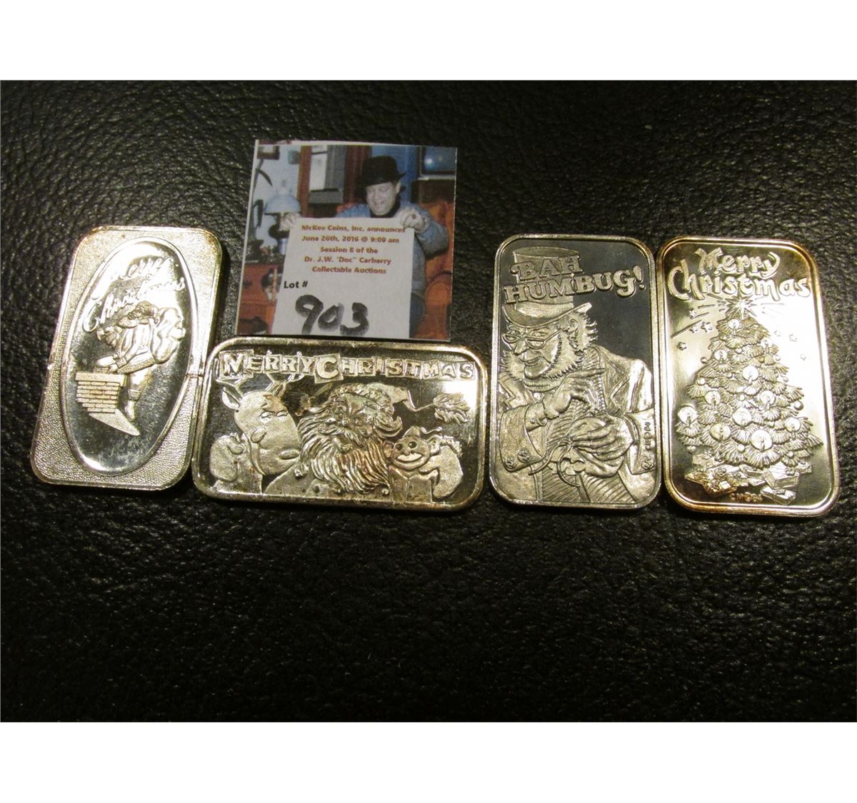 (4) different Christmas .999 Fine Silver One Ounce Medallions, BU.