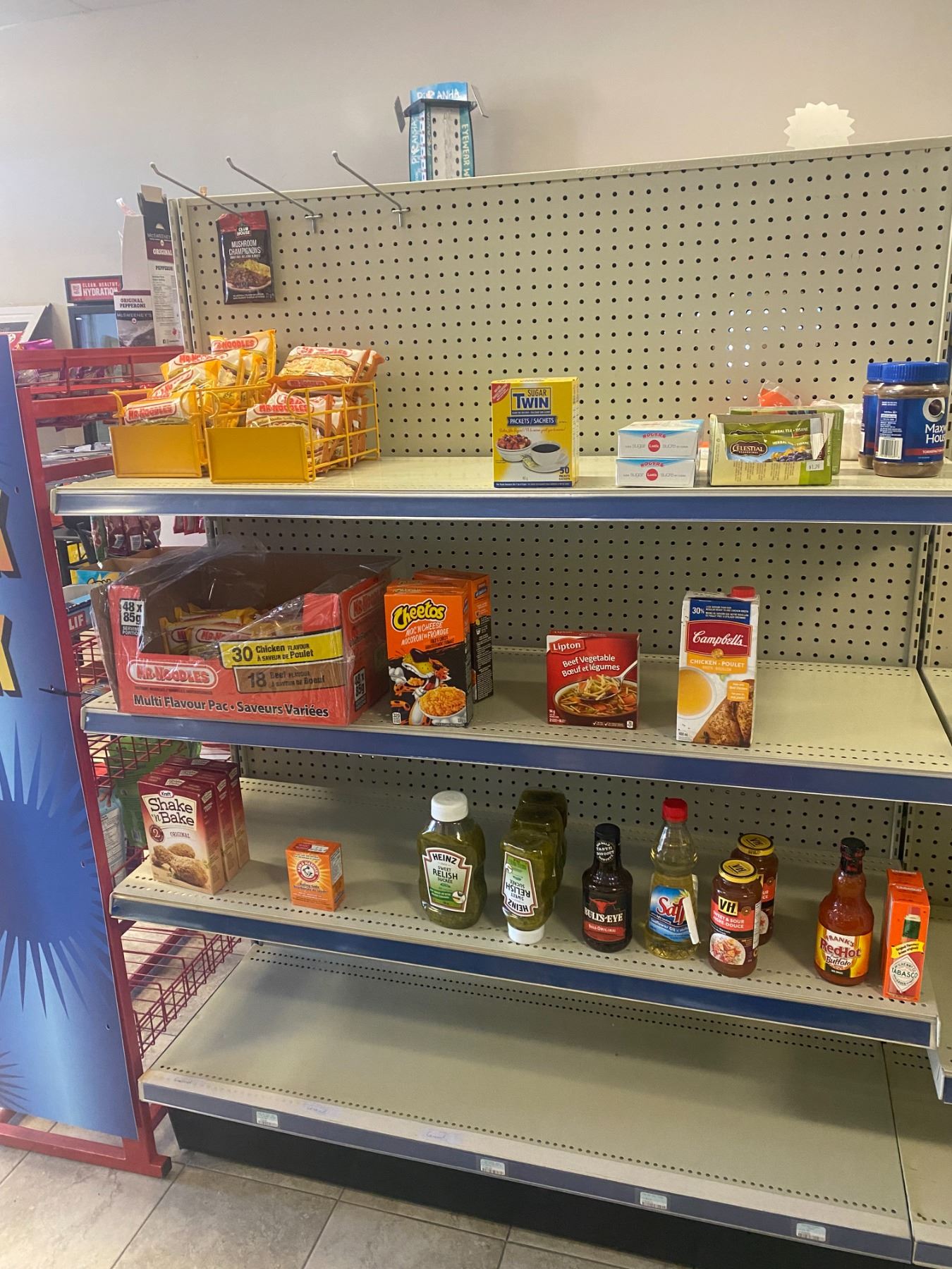 4 foot display shelf product not included c/w 4 shelves two pannels double sided second side has wire shelving product not included