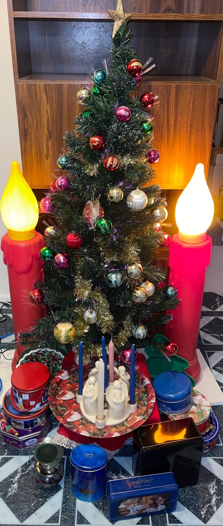 4 ft Fiber Optic Holiday Tree w/ Life Sized LED Candlesticks Angel Center Piece & More