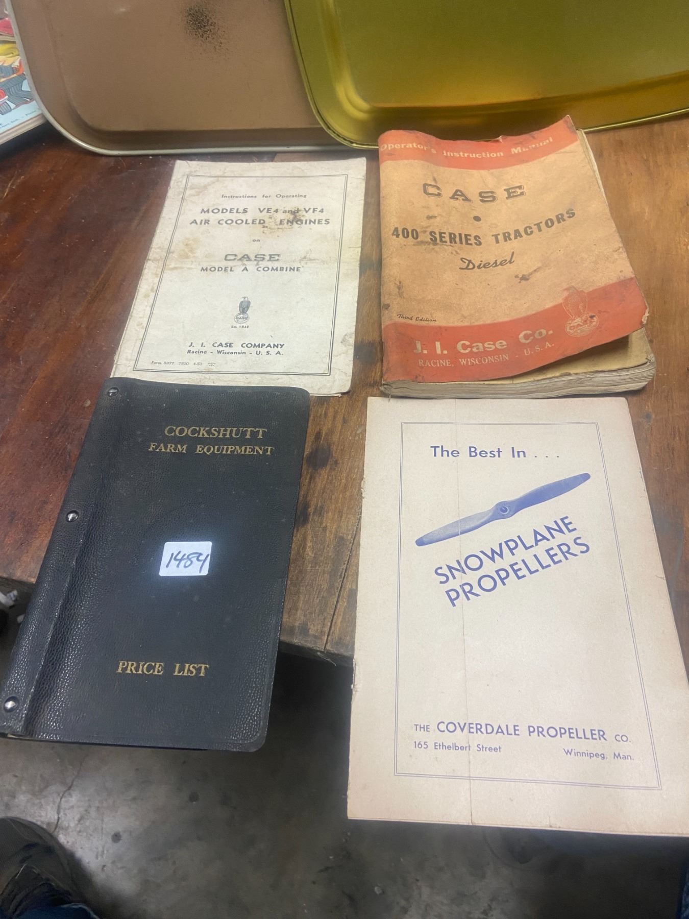 4 manuals - 2 case, 1 propeller, 1 rare cockshutt price list - 1948