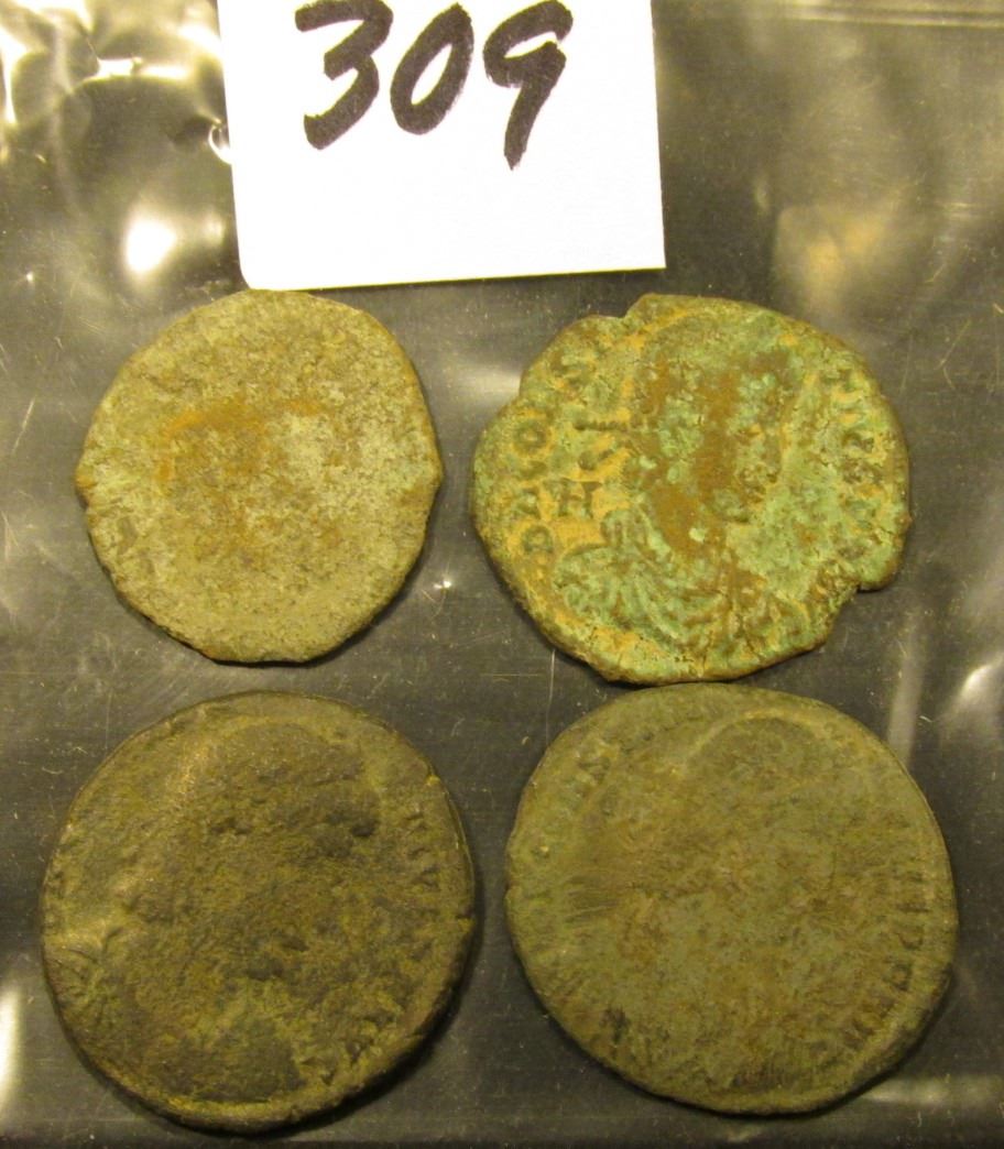 (4) more only partially attributed A.D. 337-361 AE centenionalis Constantius II. All from a metal detector found cache.