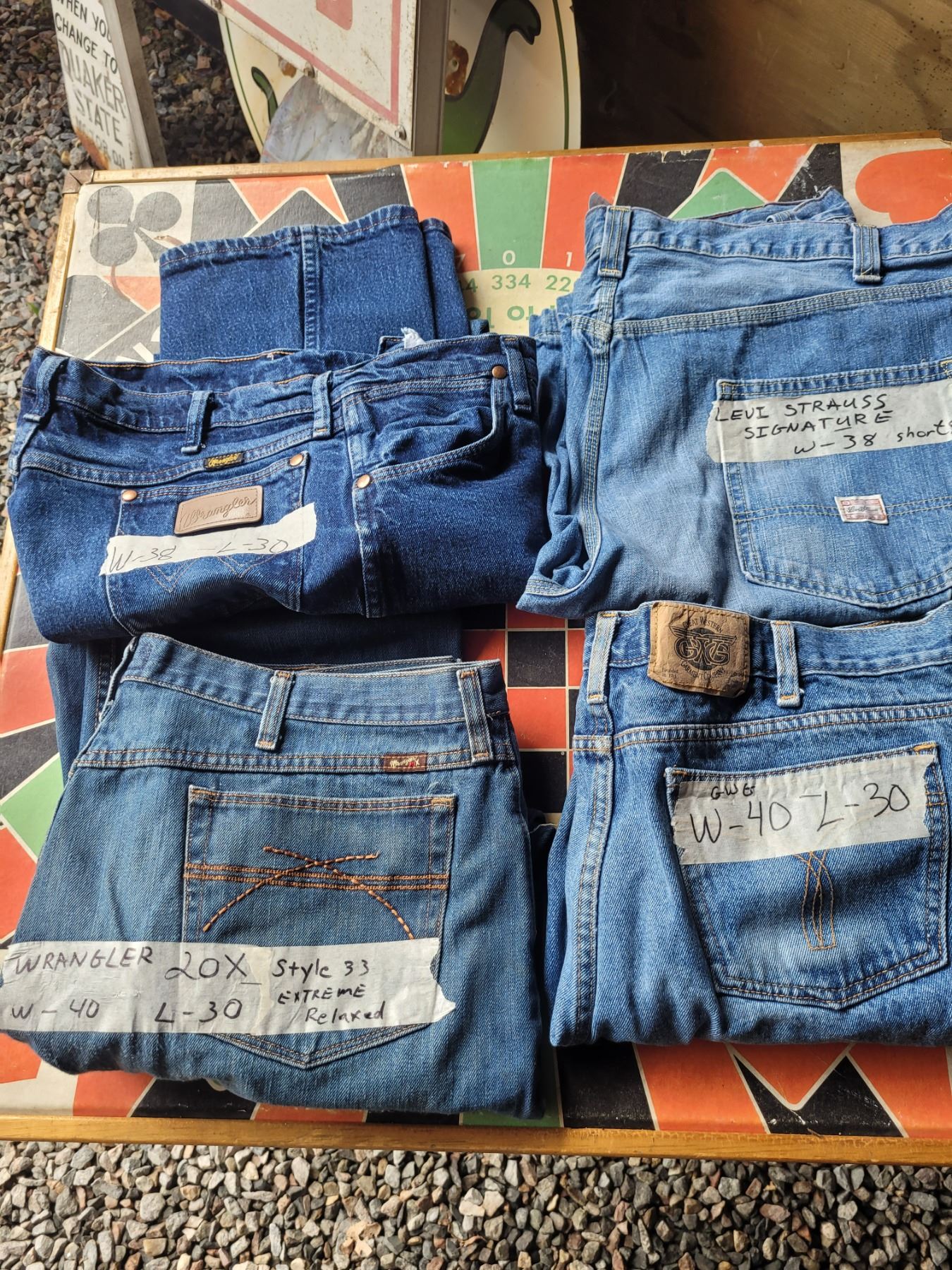 4 pair of vintage mens jeans - Levi's, Wranglers, size on each pair