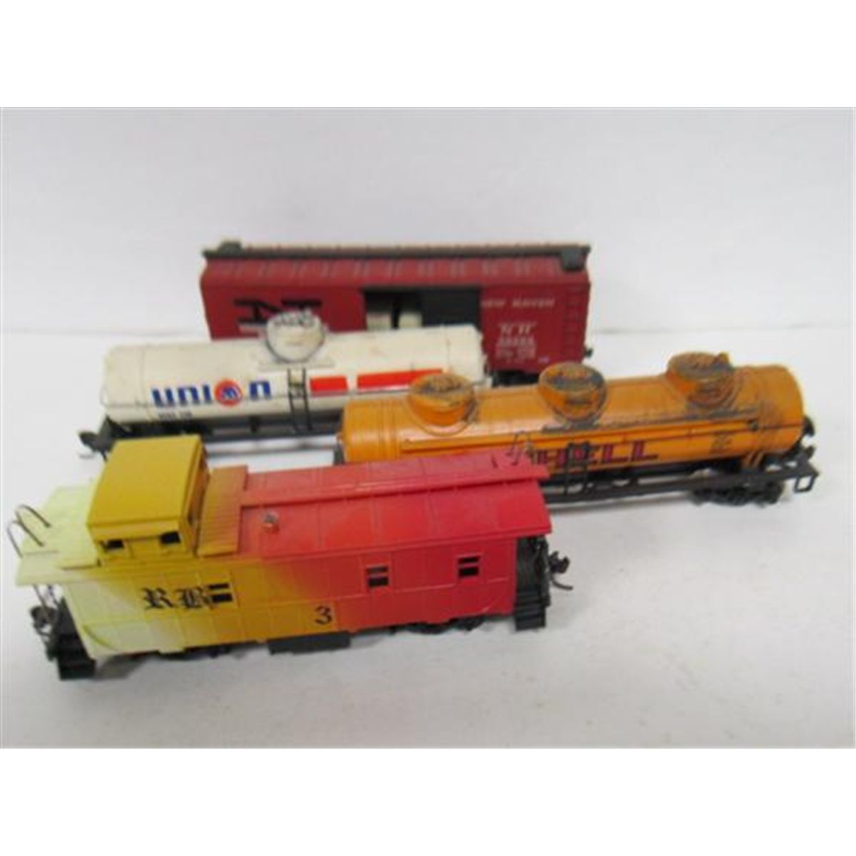 4 pc 2 tankers-Union and Shell box car NH392885-6 inch HO scale and caboose #3-