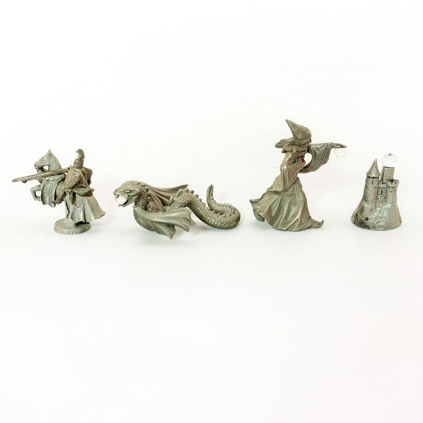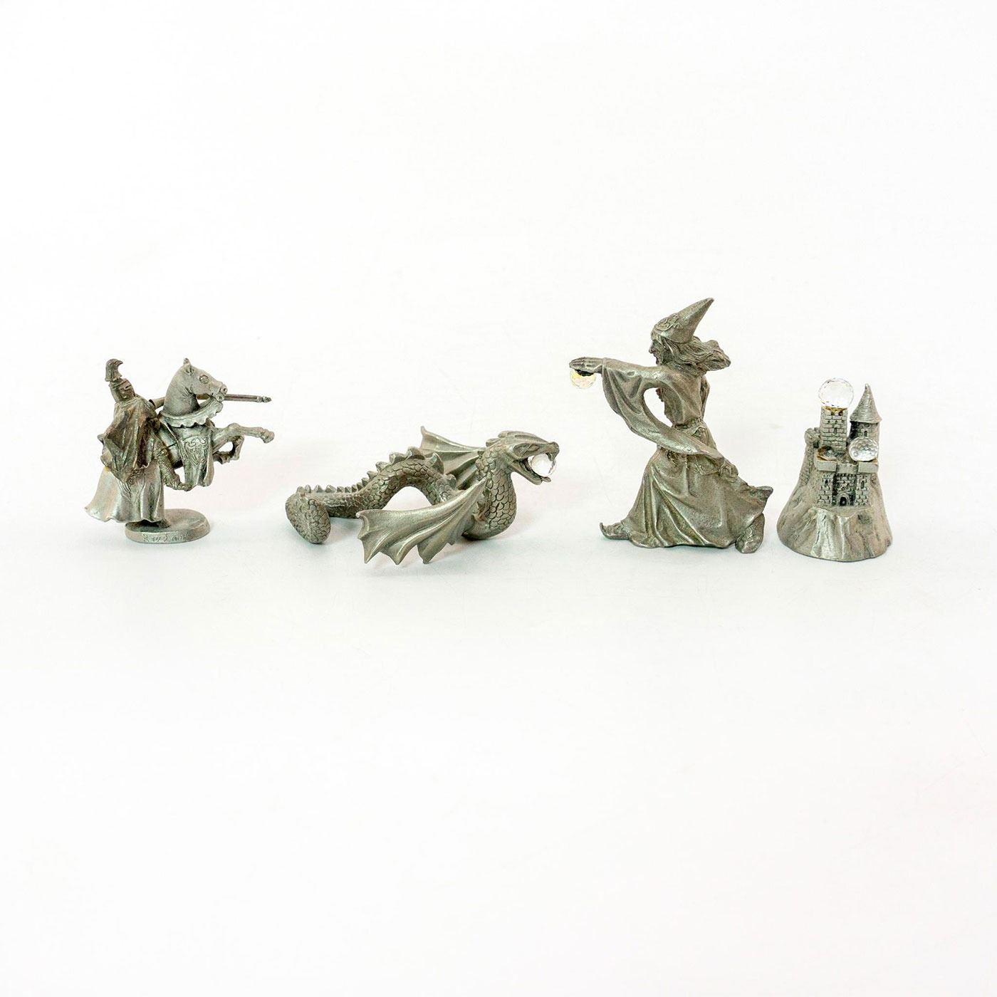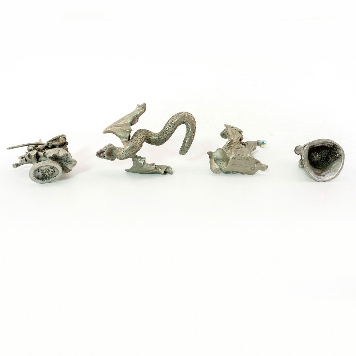4 pc Vintage Pewter Figurines, Mythical Creatures and Wizard