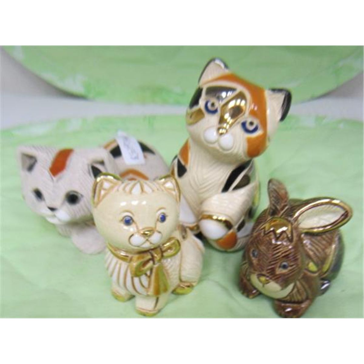 4 pc cats and rabbit all marked - Made in Uruguay - gold orange black in color stoneware style