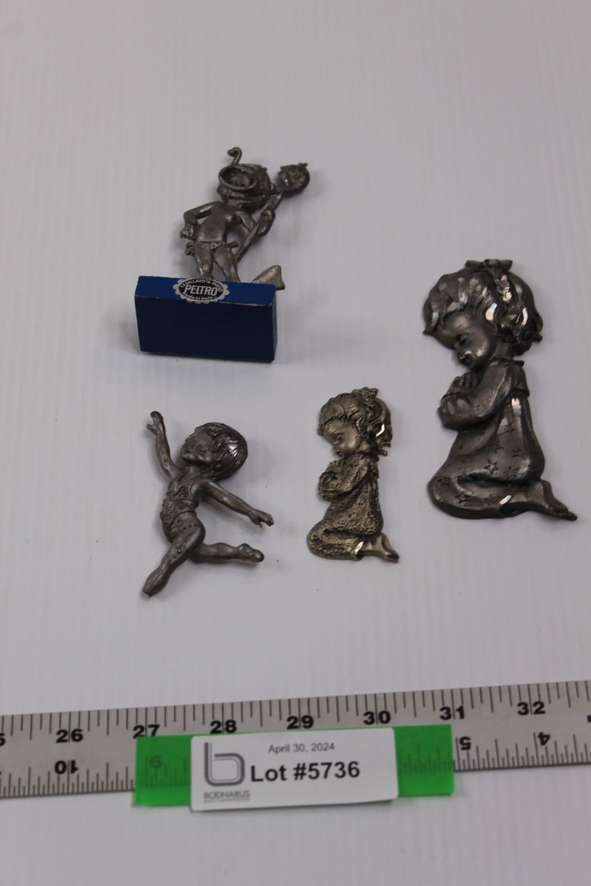 (4 pcs) Pewter Knick-Knacks (One w/missing Base) - Made in Italy