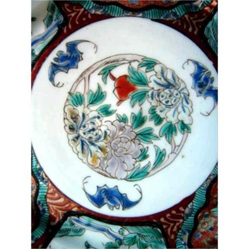 Set of four Imari Plates, These have only been in the same collection here in Chicago and are being offered for sale. The colors are rich and pure, The designs are crisp an clean. The backs are all designed with the surounding Bat motif in Orange, this is proper. Condition is excellent and wonderful. No chips cracks and are real.. Great buy.