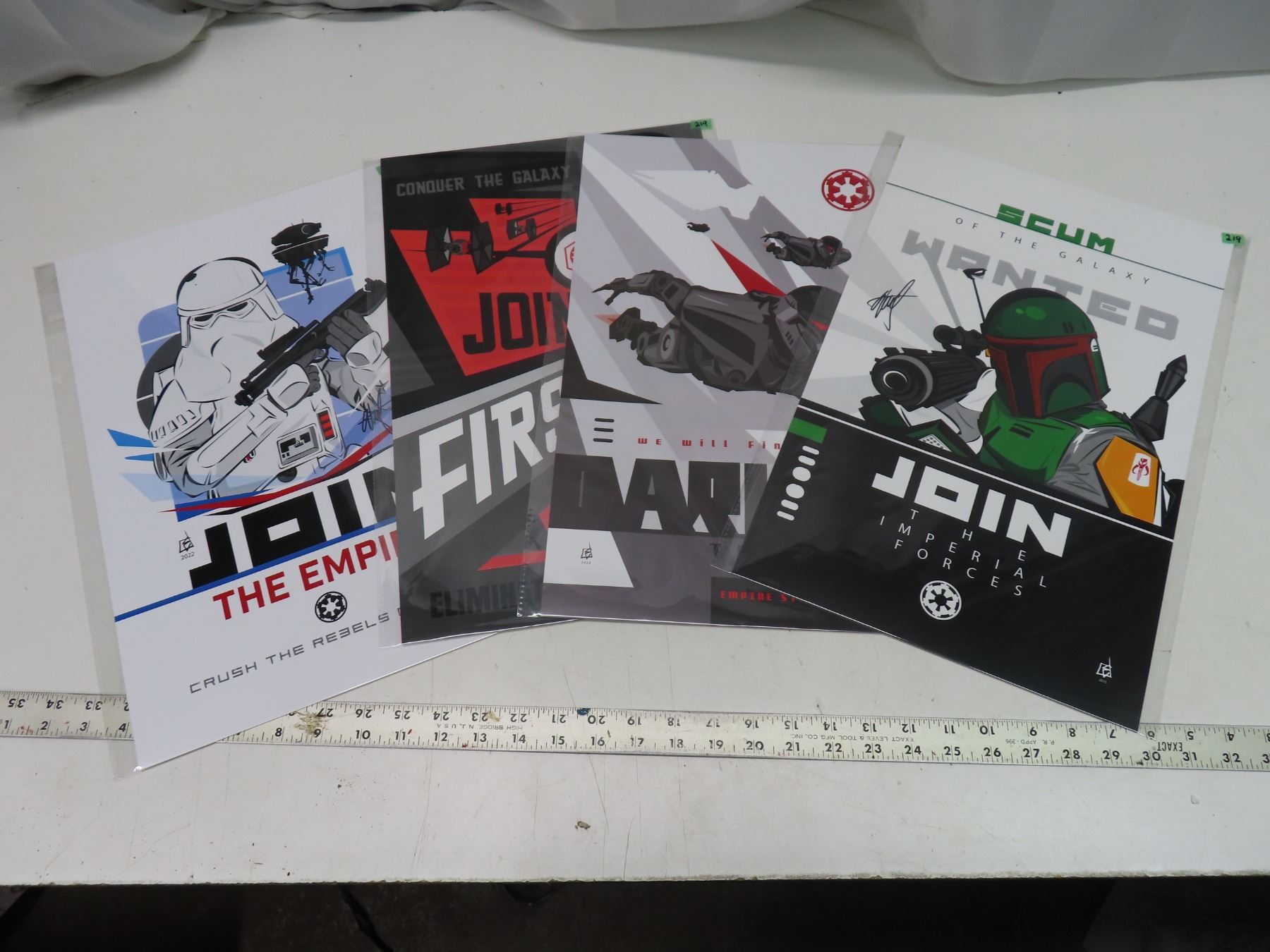 4 premium signed art prints by canadian 11"x17" LTD edition star wars propaganda series, join the empire, join istorder, dark troopers, join the imperial forces electricimpression.com