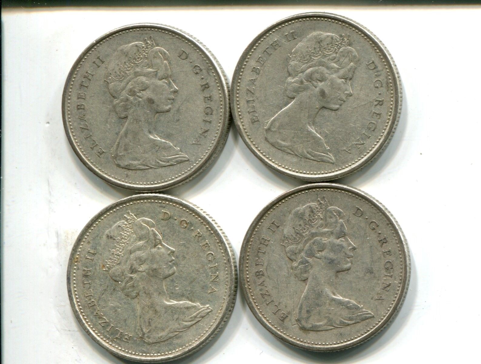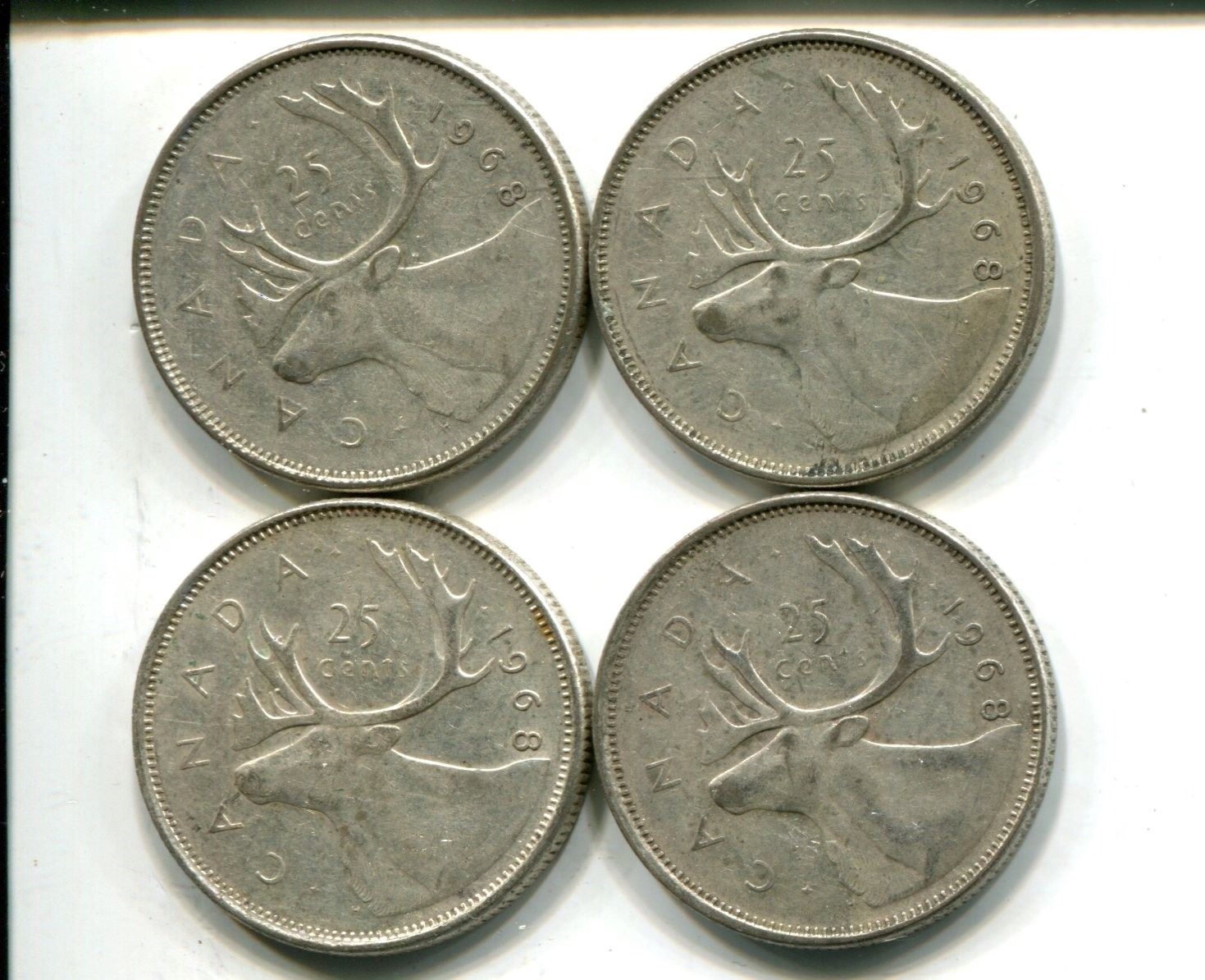 4 silver Canadian 1968 quarters