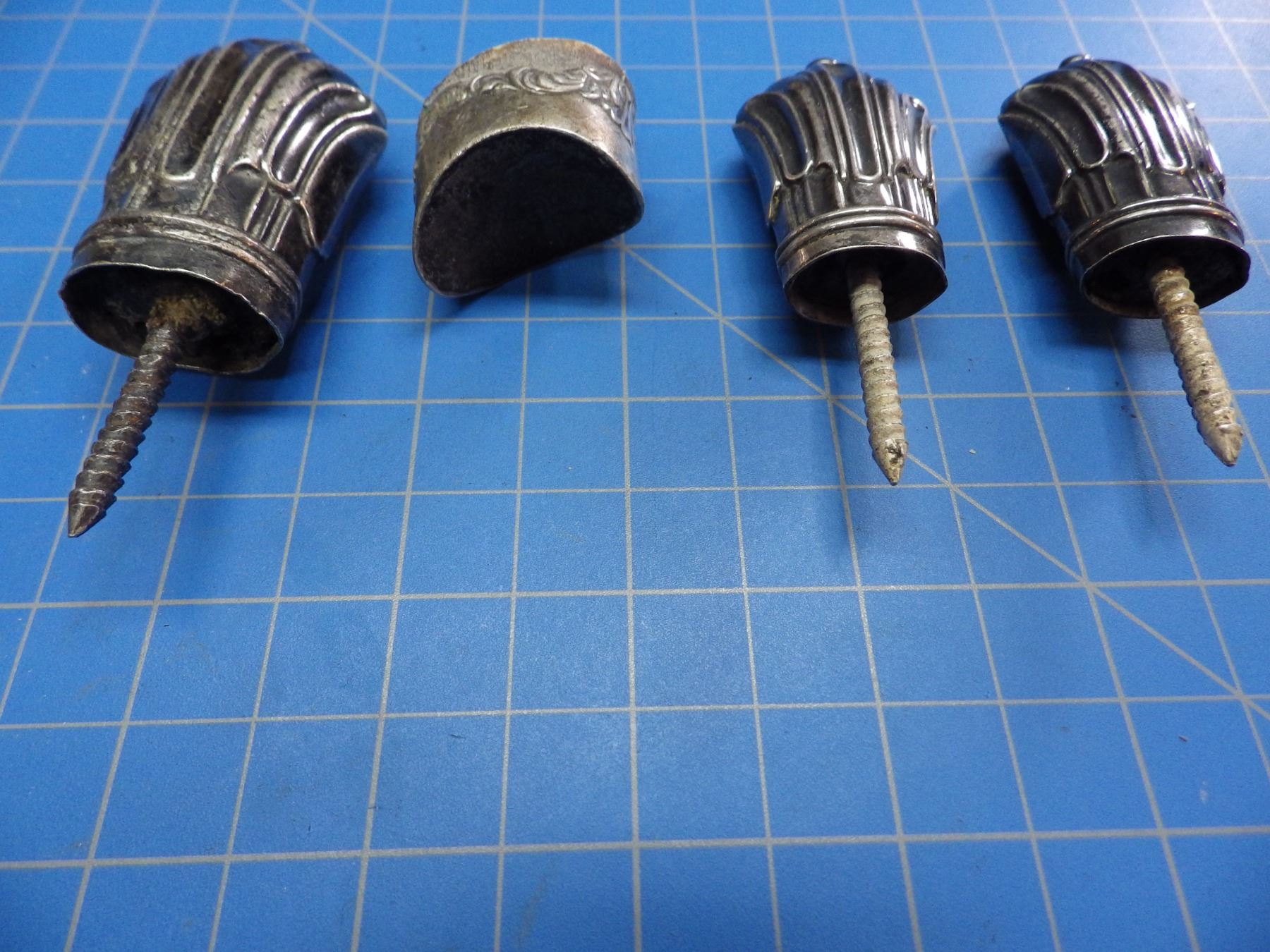 4 silver pommels from knives or daggers, all need polishng
