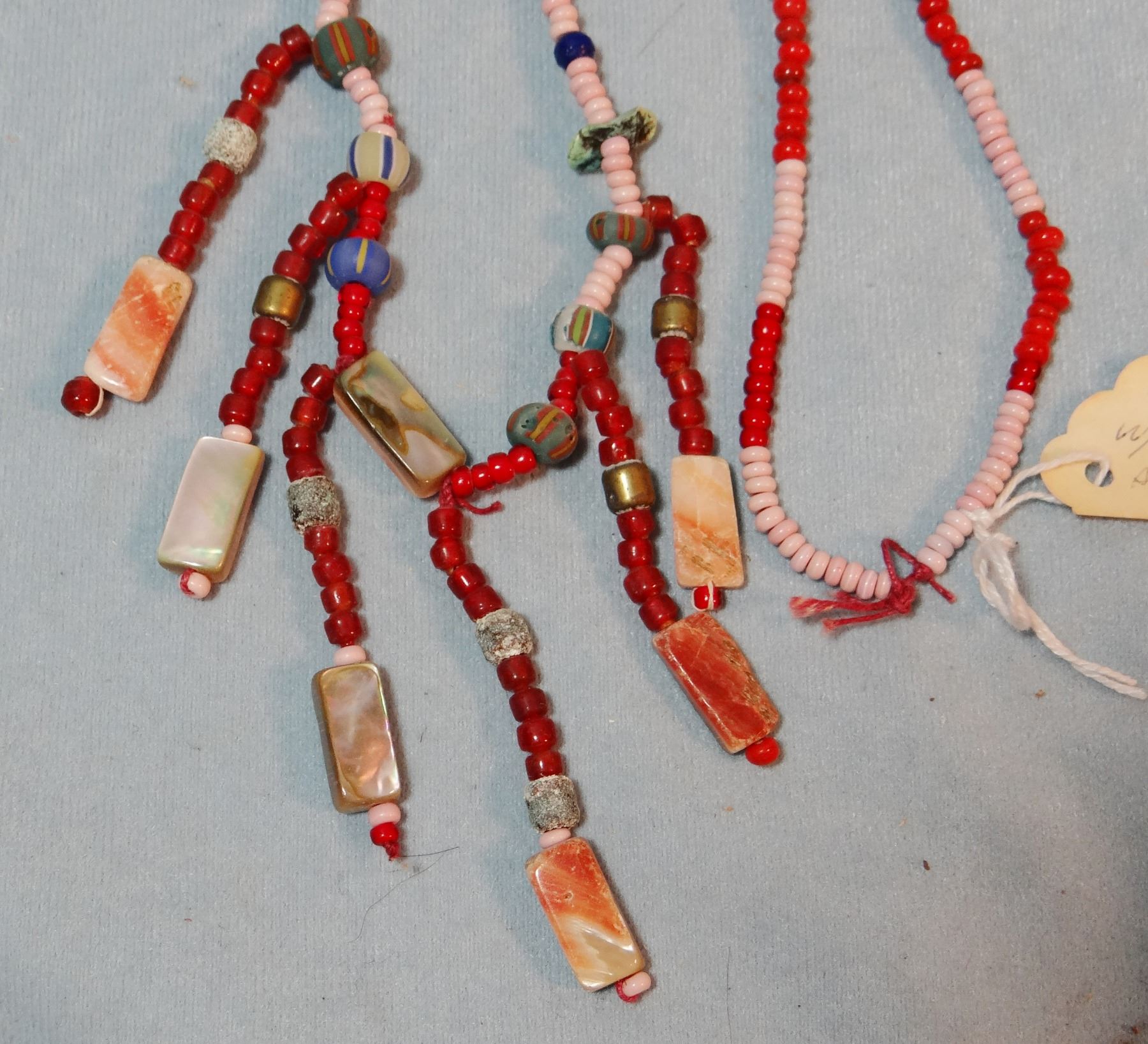 (4) strings of very old beads: burial beads w/abalone shell, beads w/abalone trim, NW Coast beads fr