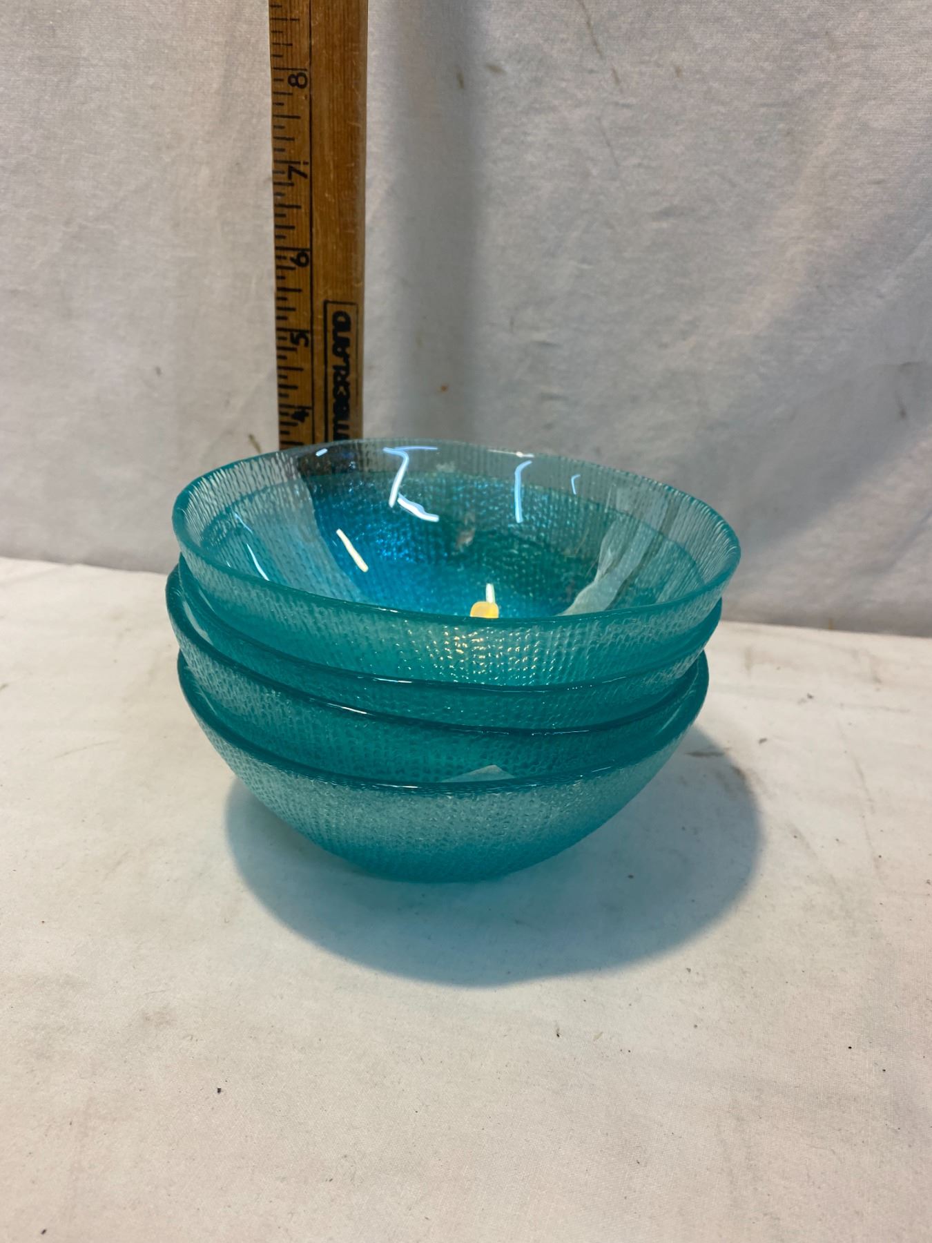 4 turquoise 6" glass bowls by Alcan of Turkey