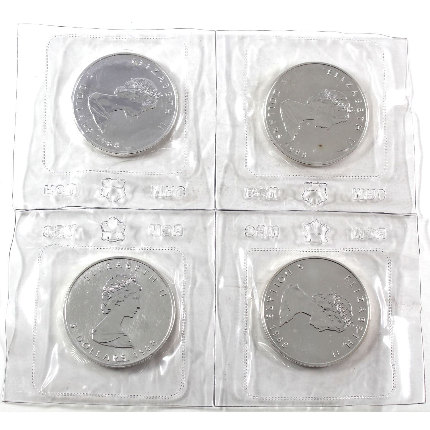 4 x 1988 Canada 1oz .9999 Fine Silver Maple Leafs in Original Sealed Mint Plastic Sheet. 4pcs (TAX Exempt)