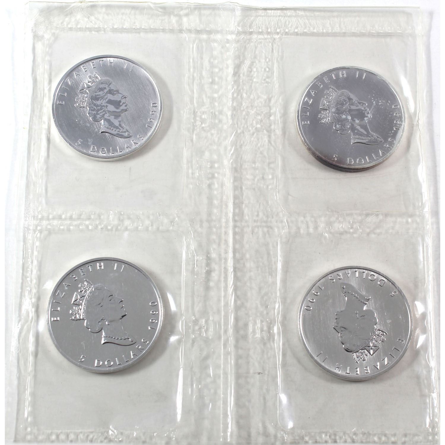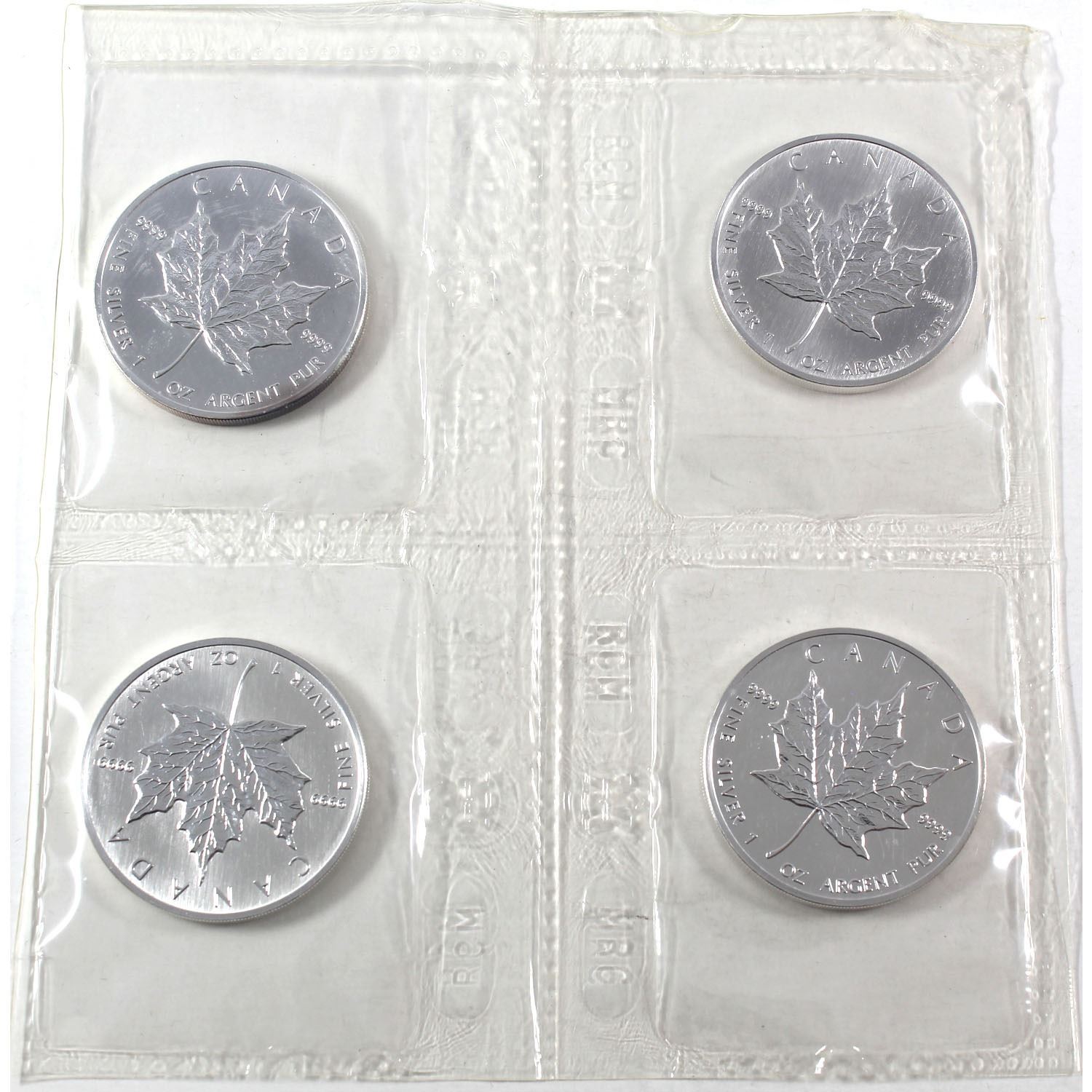 4 x 1990 Canada 1oz .9999 Fine Silver Maple Leafs in Original Plastic Mint Sheet. 4pcs (TAX Exempt)