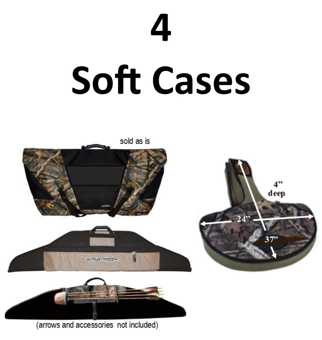 4 x Bow Cases, 1-Blacks Creek Lost Camo Soft Sachel, 1-Allen Co. X-Bow, 1-Elite Recurve, 1-Vista Ultra Deluxe Recurve