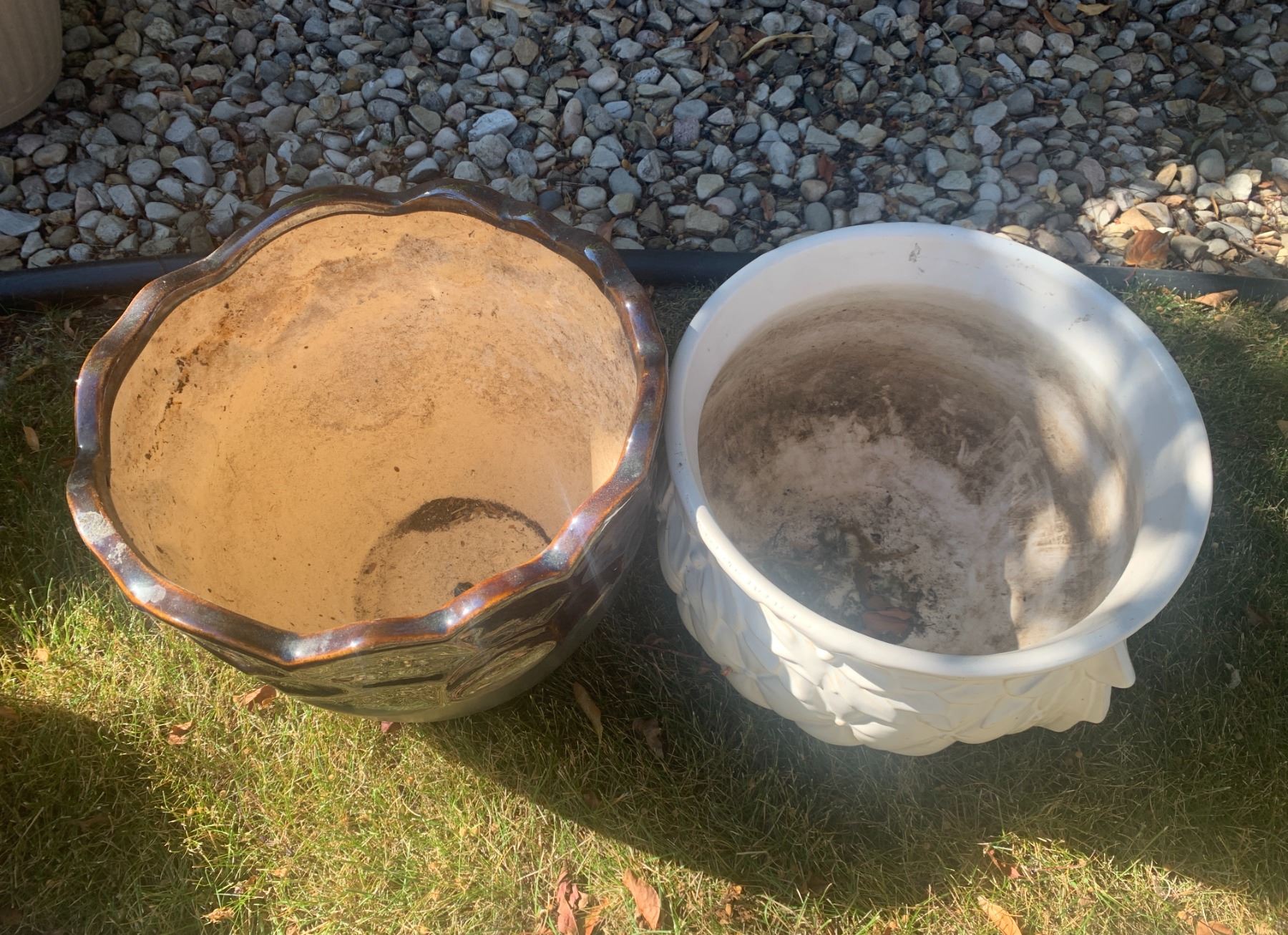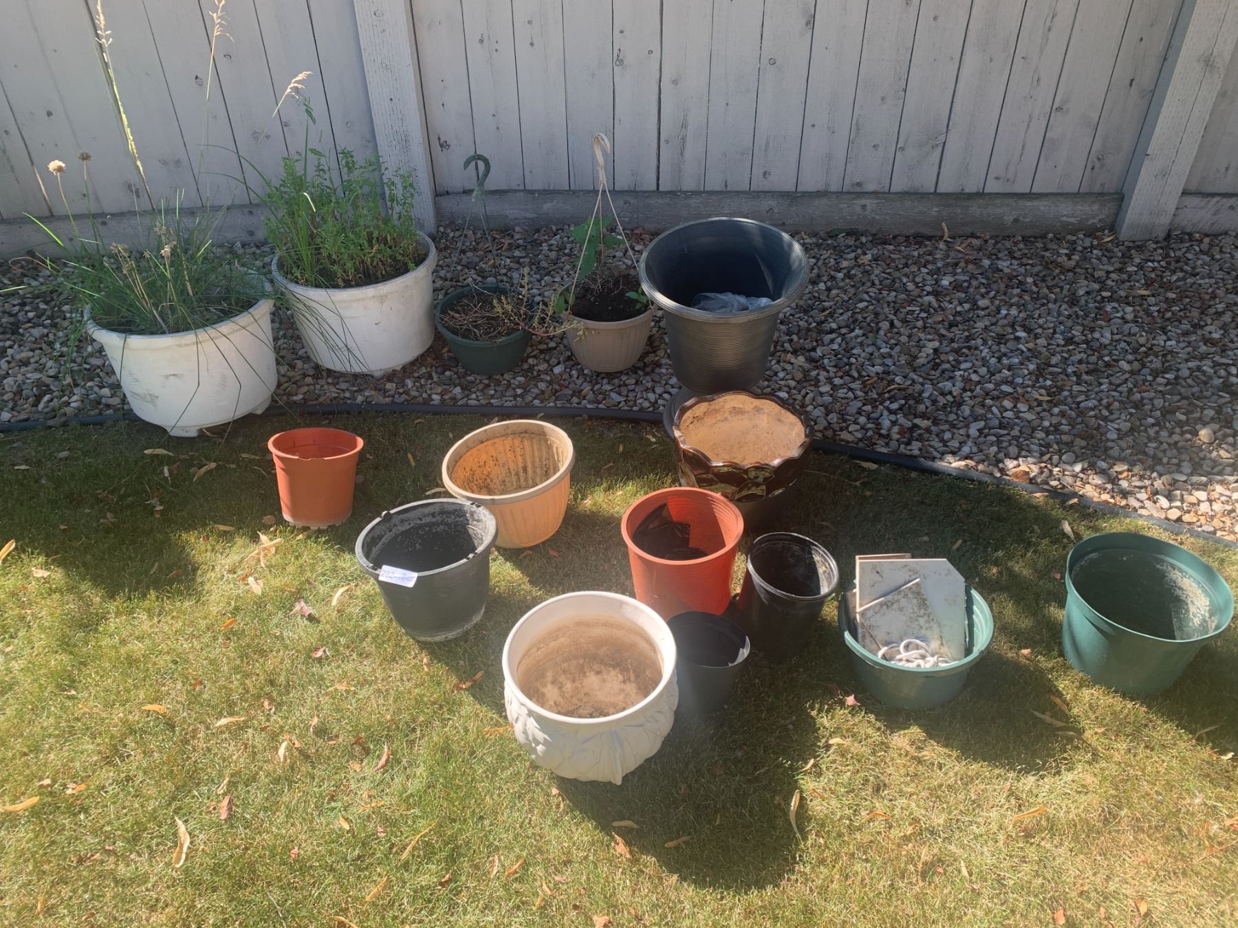 Pots: Some plastic, some ceramic - 2 x ceramic pots are pictured