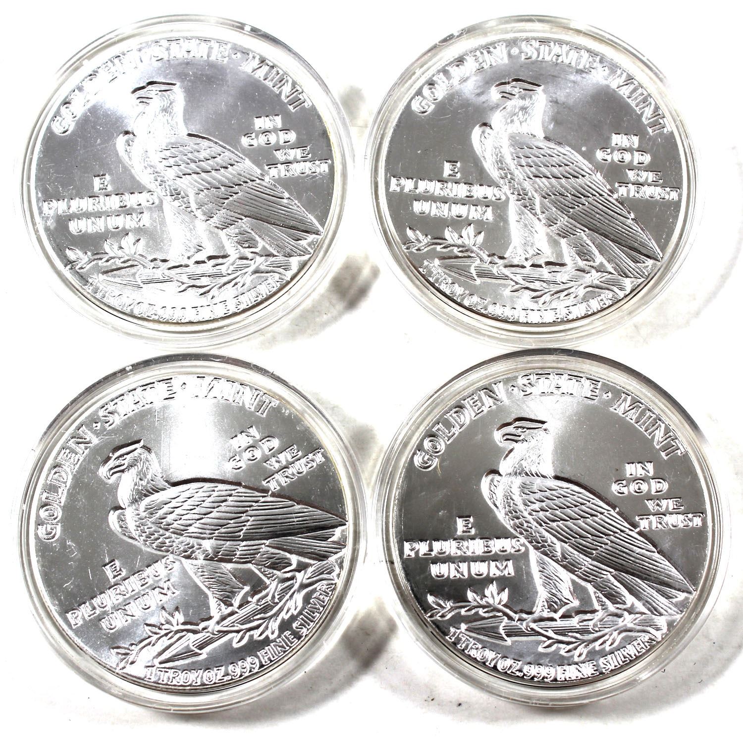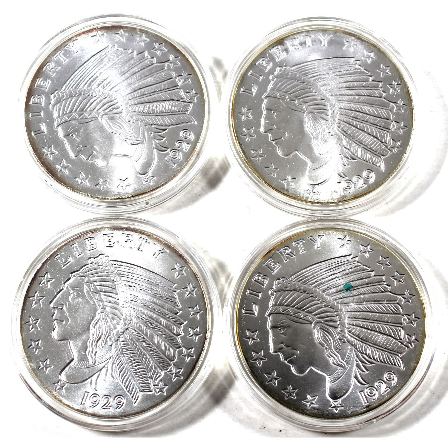 4 x Golden State Mint 1oz 1929 Liberty Indian Head .999 Fine Silver Rounds in Capsules. 4cps (TAX Exempt)