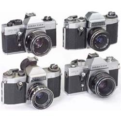 VEB Pentacon, Dresden: 1) "Praktica Nova B", 1966, Domiplan 2,8/50, (2/2). - 2) "Praktica PL Nova IB", 1967, Isco Iscotar 2,8/50, (3/2). - Und: 3) "Praktica MTL 3", 1980, Pentacon auto 1,8/50, (3+/2). - Sowie: 4) "Praktica MTL 50", 1985, Oreston 1,8/50, (3/2). - € 140/180 - (126/17)