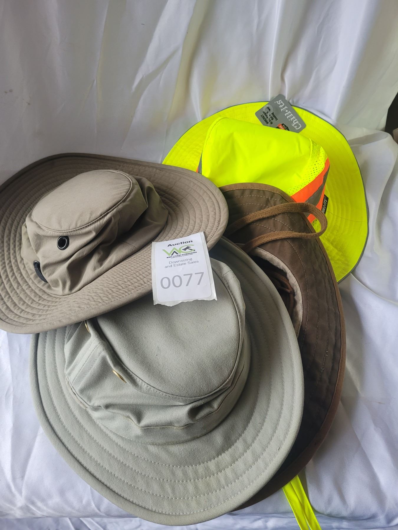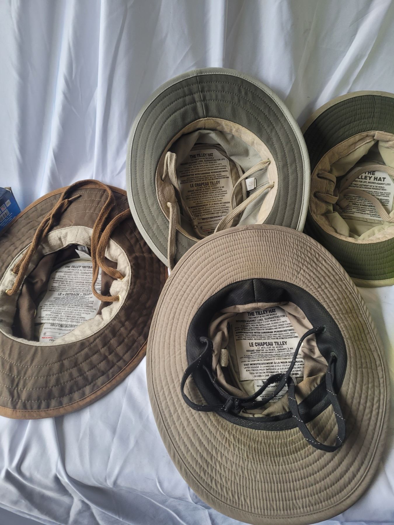 4 Tilley Outback Hats and a Chill-Its hat. Pickup at 9 am