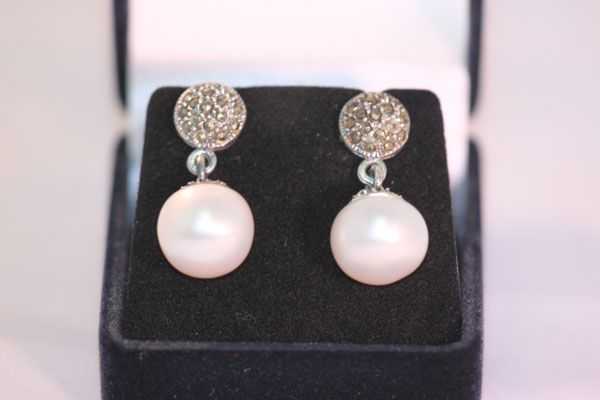 40.00 CTW ANTIQUE LOOKING PEARL DANGLING EARRING .925 S **|**|** 40.00 CTW ANTIQUE LOOKING PEARL DANGLING EARRING .925 STERLING SILVER ; MSRP: $250
