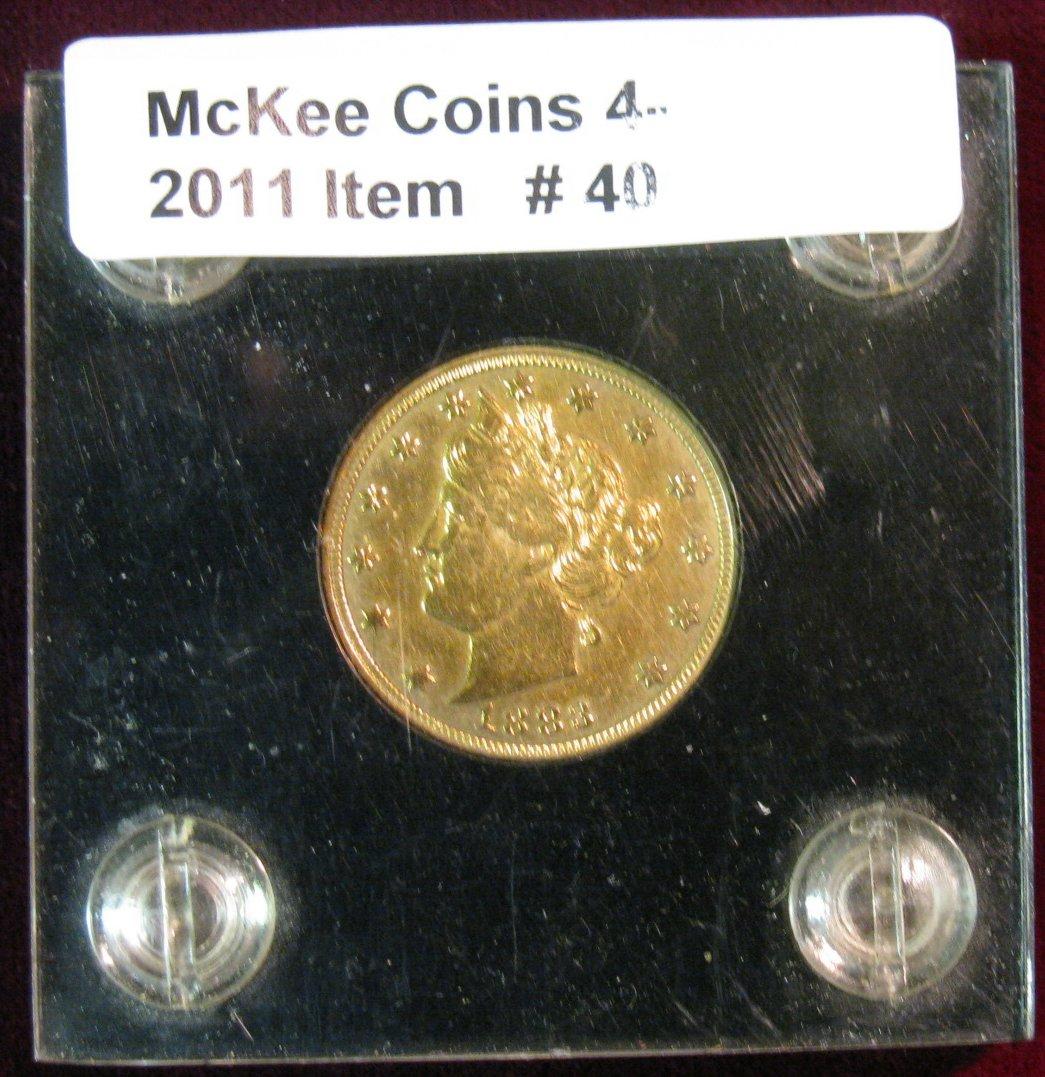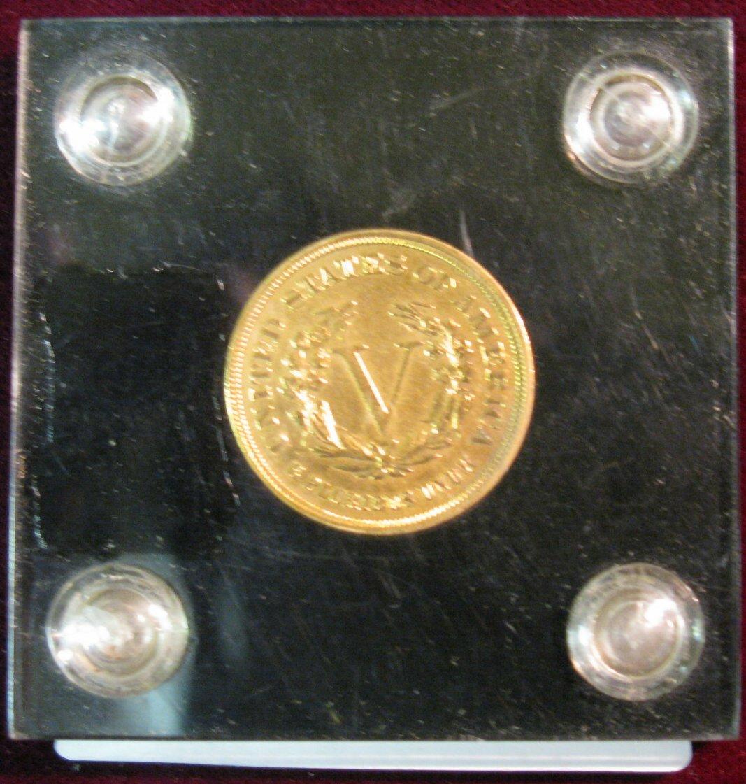 40. 1883 Gold-plated Racketeer Liberty Nickel. EF. Mounted in a Capitol holder.