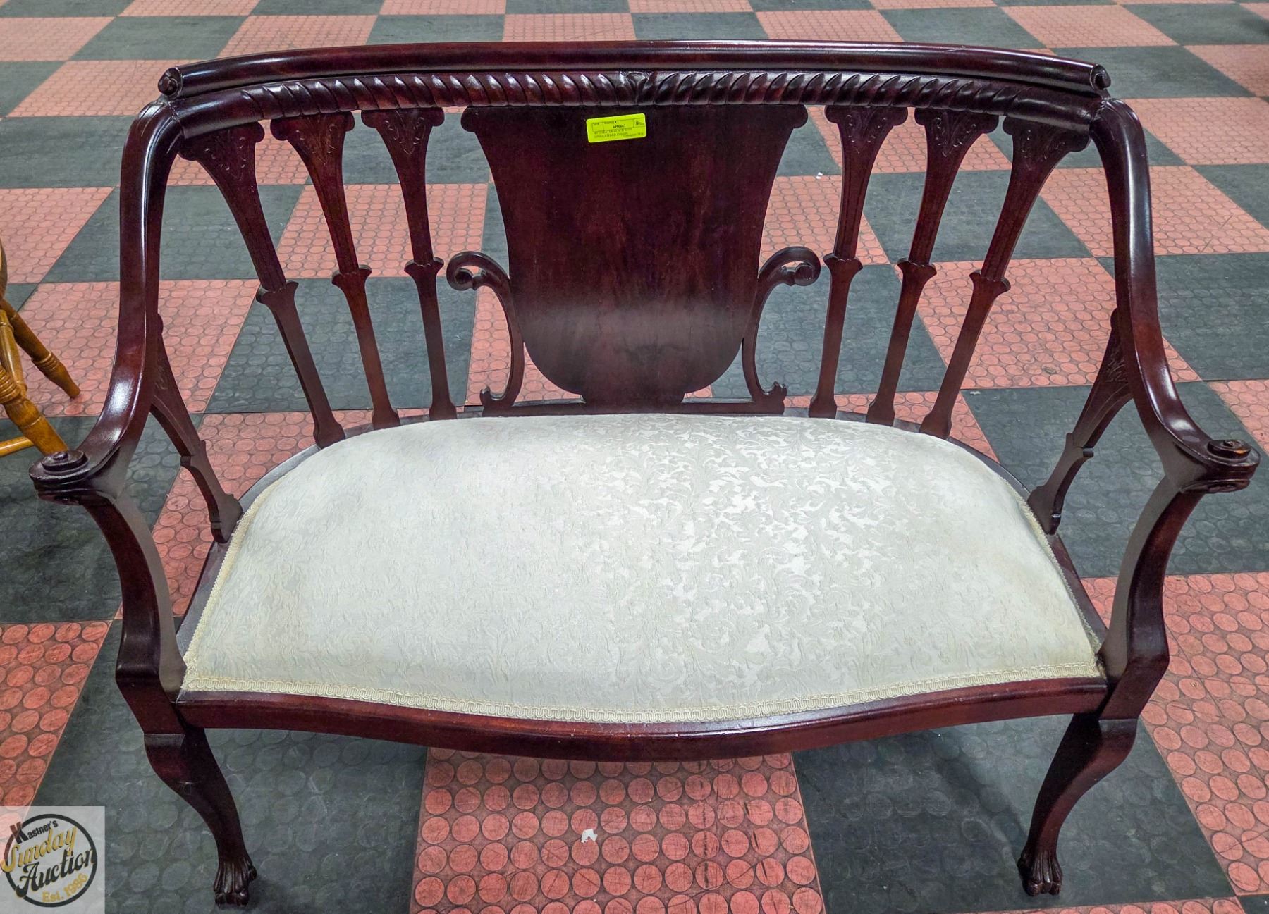 40  2 SEATER BENCH WITH UPHOLSTERED CUSHION