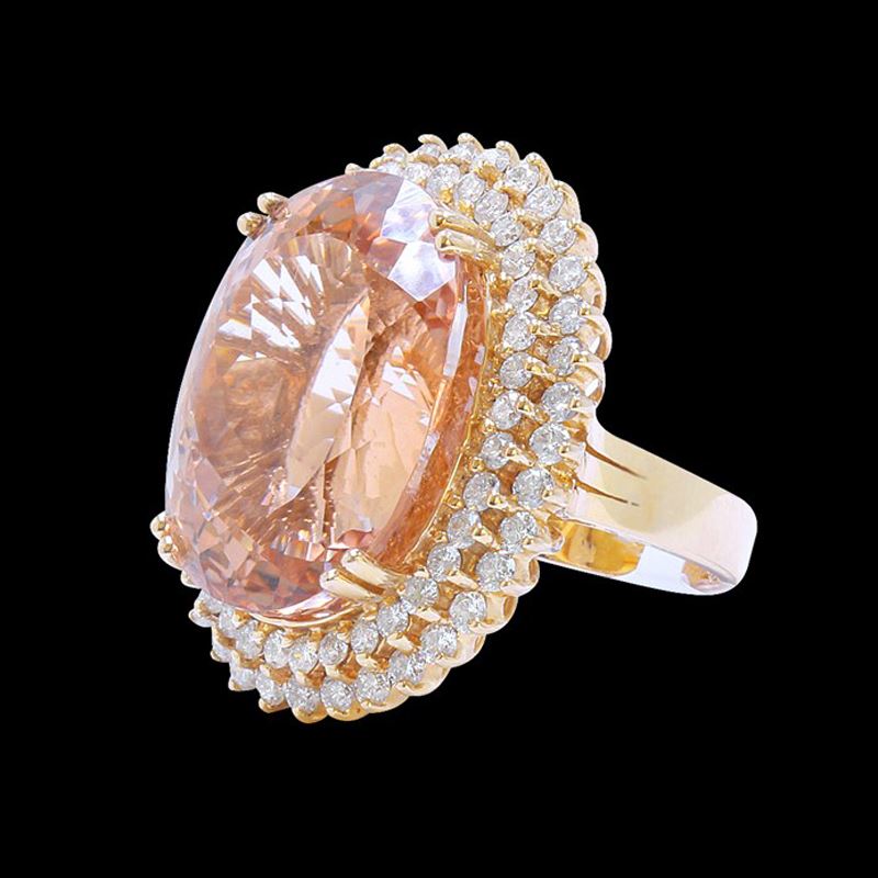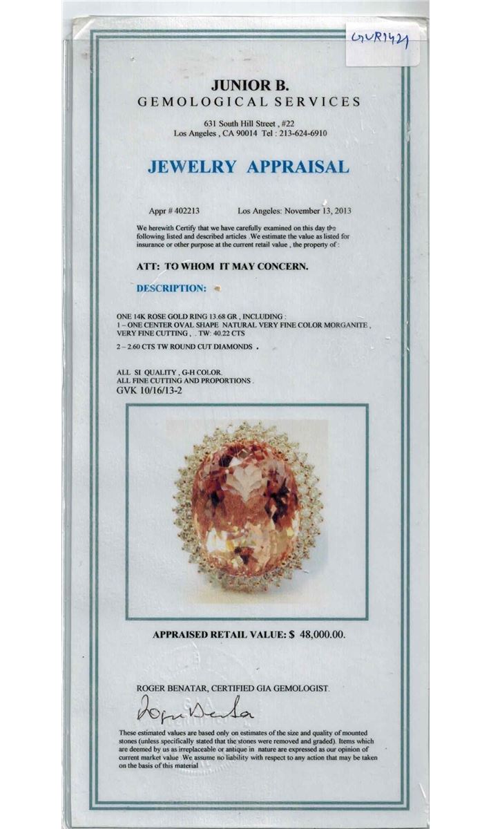 14K R/G NATURAL MORGANITE RING : 13.68GM/MORGANITE :40.22CT/DIAMOND:2.60CT/#GVR1421