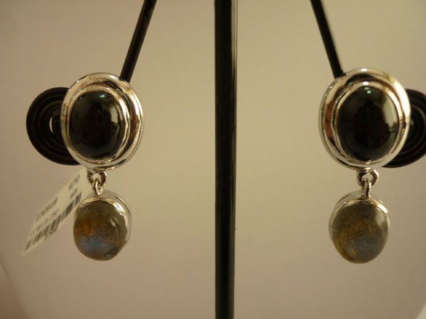 40.25 CTW BLACK STAR AND LABARODITE EARRING .925 STERLI **|**|** 40.25 CTW BLACK STAR AND LABARODITE EARRING .925 STERLING SILVER ; MSRP: $275