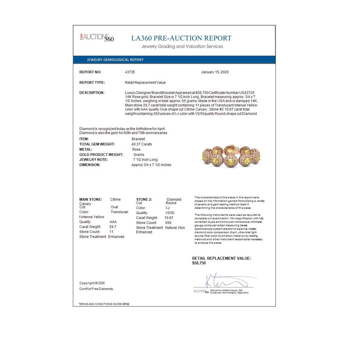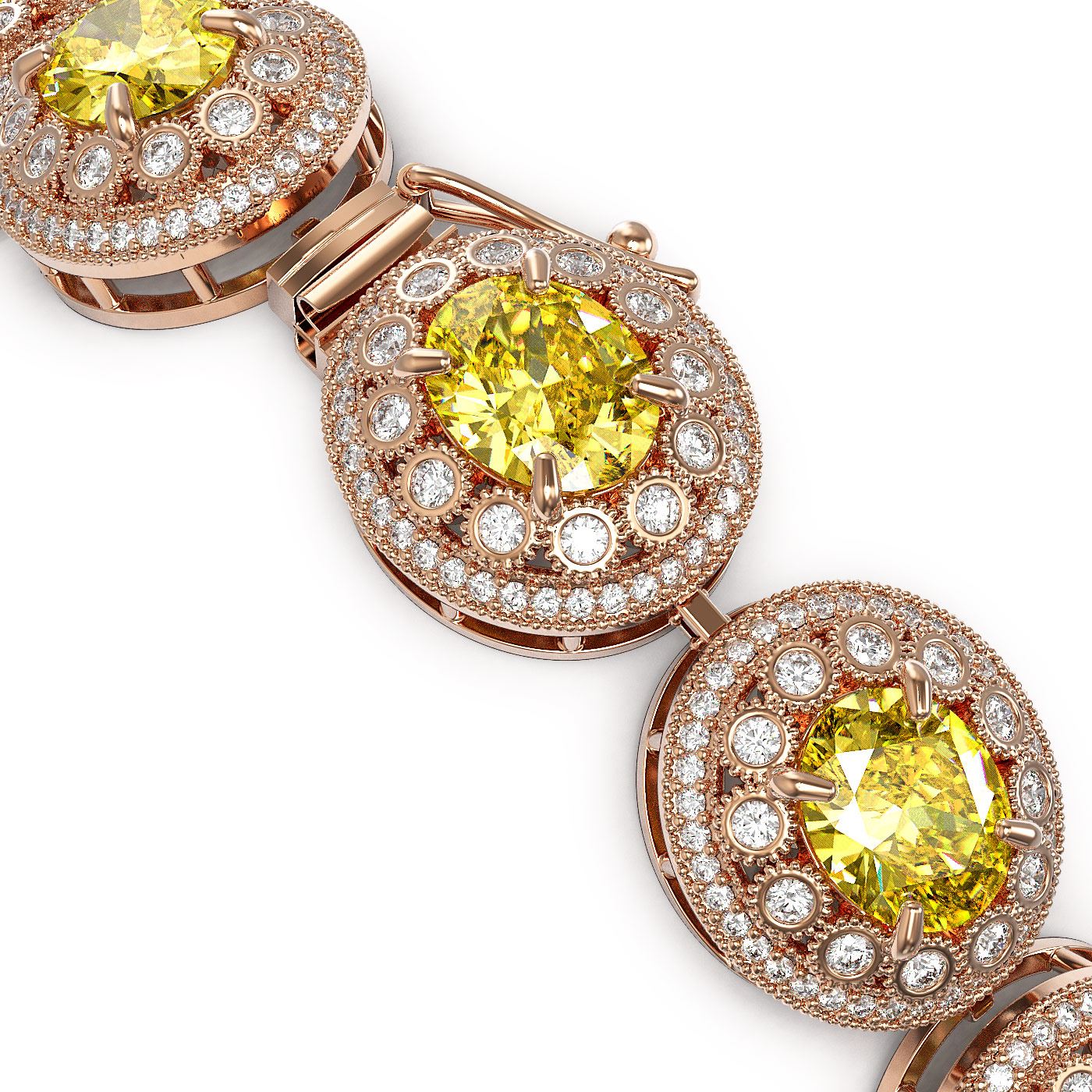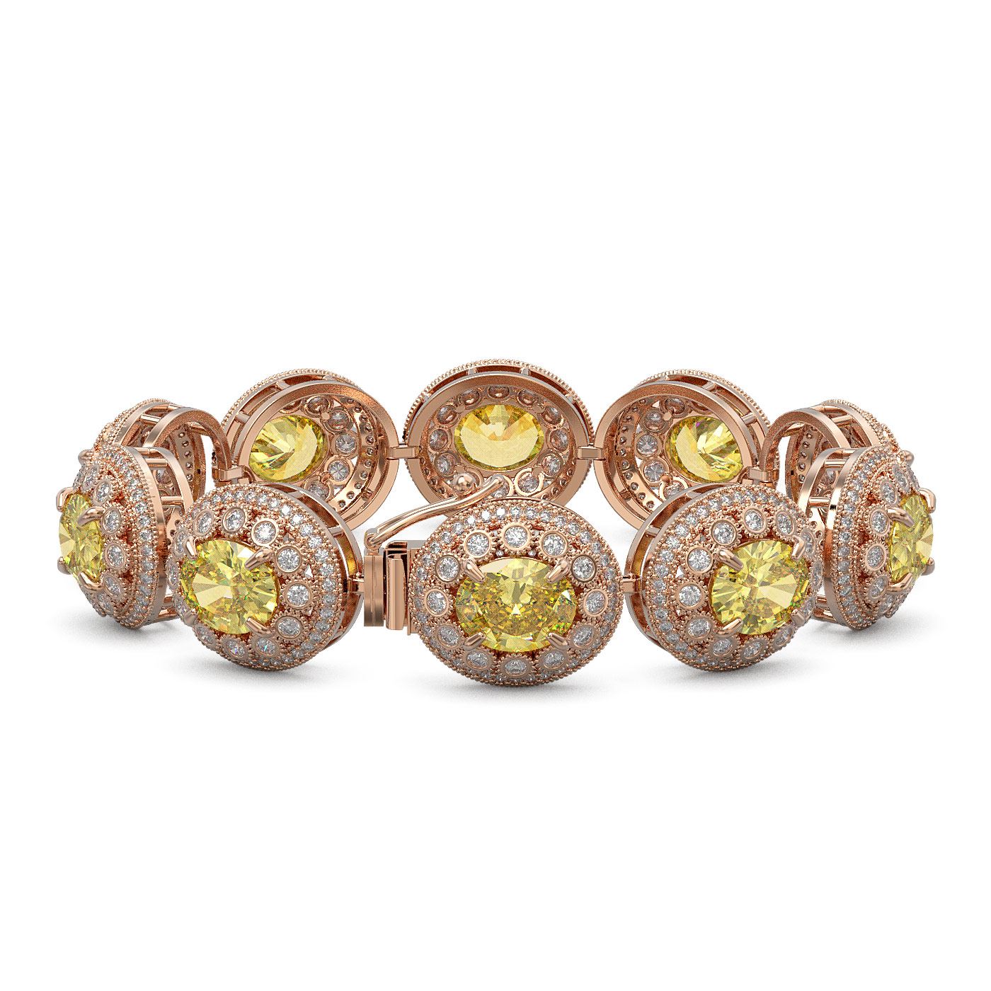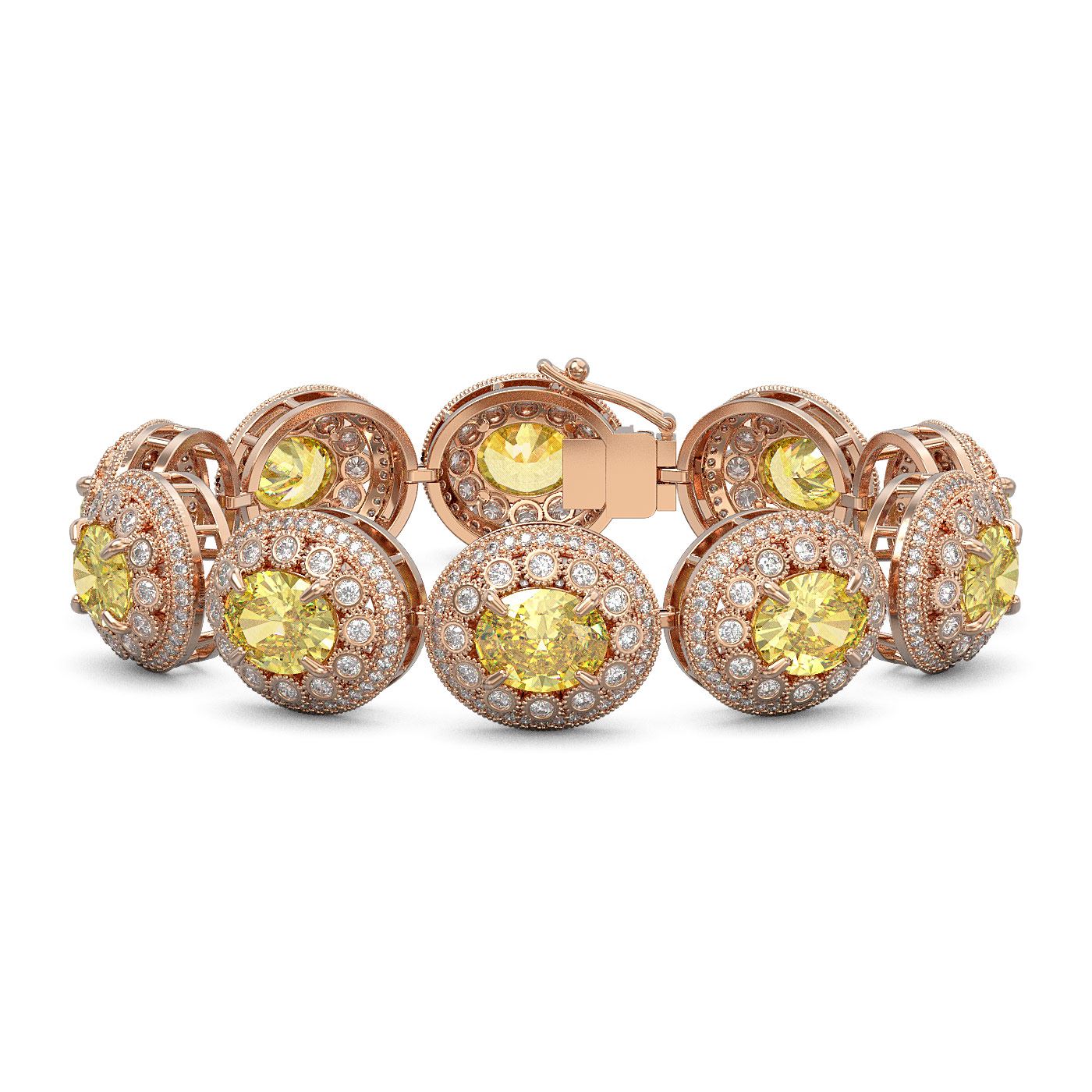 REF-1186H4R - SKU: 43725 ---- 40.37 ctw Canary Citrine & Diamond Victorian Bracelet 14K Rose Gold