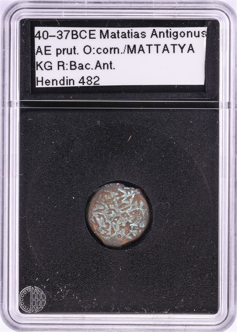 One 40-37BCE Matatias Antigonus AE Prutah Ancient Coin.