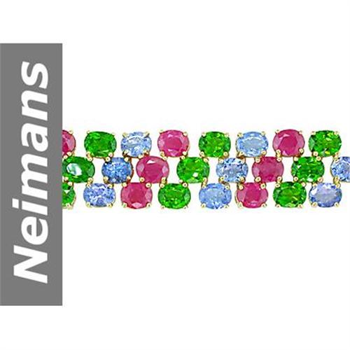 40.90 ct Chrome Diopside, Ruby & Tanzanite Bracelet 14kt Gold