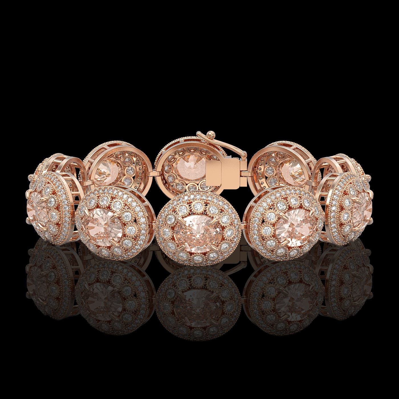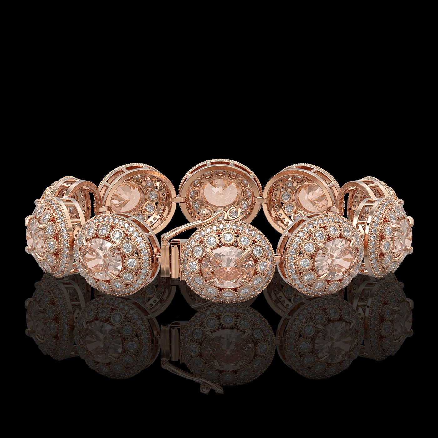 REF-1709A3N - SKU: 43734 ---- 40.92 ctw Morganite & Diamond Victorian Bracelet 14K Rose Gold