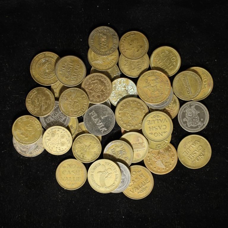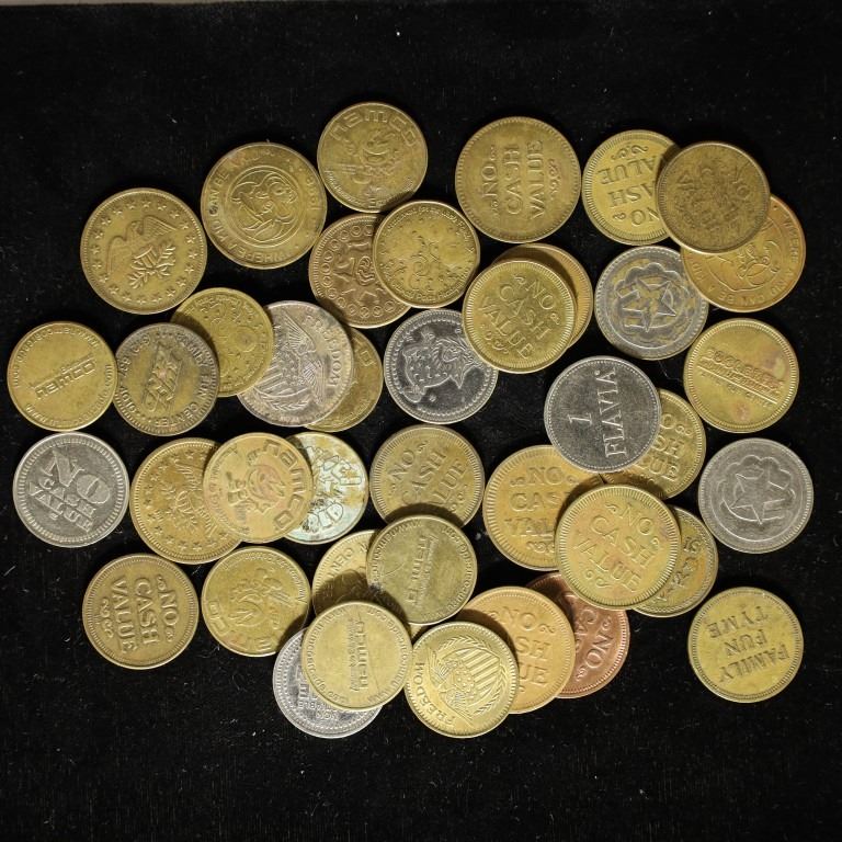 TOKENS: NAMASCO, CHUCK E CHEESE, EAGLE. HORSE SHOE WITH STAR AND OTHERS
