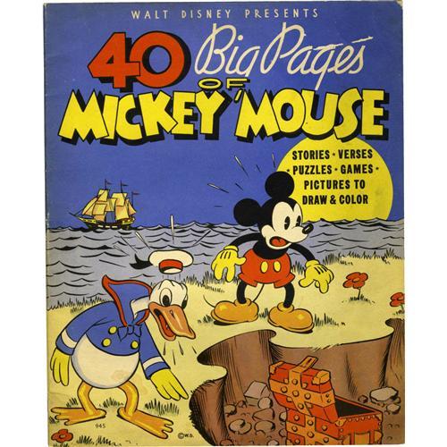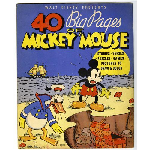 <B>40 Big Pages of Mickey Mouse #945 (Whitman, 1936) Condition: FN/VF.</B></I> This is a rare item we hadn't seen in years, and this is the first time we've seen a copy with supple pages and without any markings in the interior. This reprints <B>Mickey Mouse Magazine</B></I> #1, with a different cover and slightly altered content. There's very slight edge wear consistent with careful reading, a small stain on Donald and a slight stain at one corner of the first two pages. How could any collector of Disney comics pass this one up? Overstreet 2006 FN 6.0 value = $489; VF 8.0 value = $1,019.<BR><BR><b>Shipping:</b> Books & Catalogs (<a target="_blank" href="http://www.heritageauctions.com/common/shipping.php">view shipping information</a>)