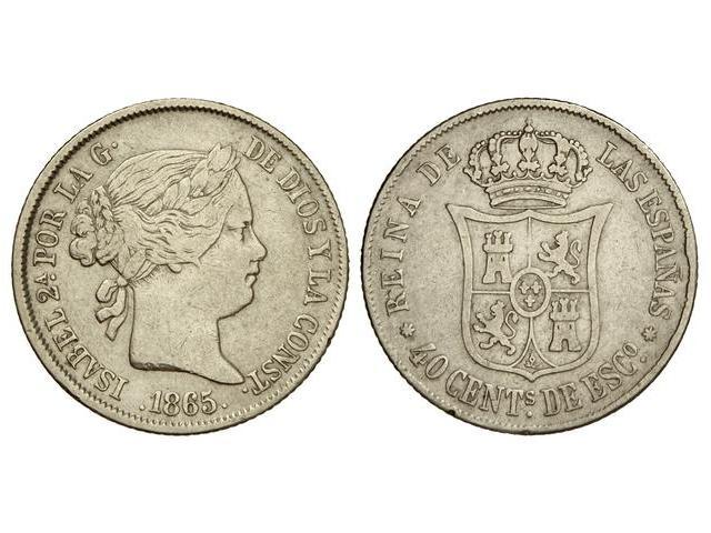 40 Céntimos de Escudo. 1865. SEVILLA. Cal-341. MBC.