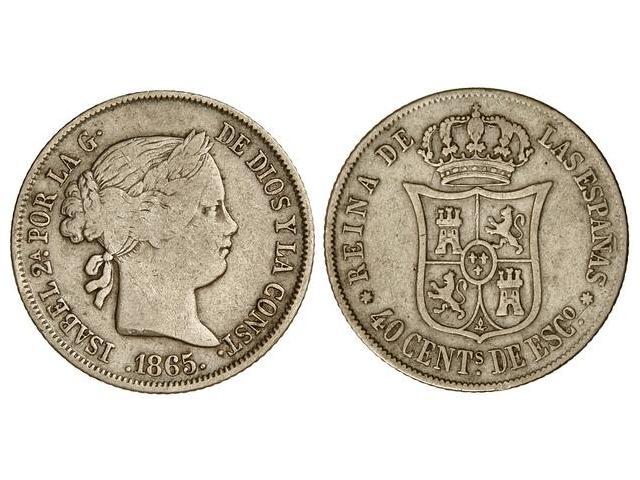 40 Céntimos de Escudo. 1865. SEVILLA. (Leves rayitas). Cal-341. MBC-.